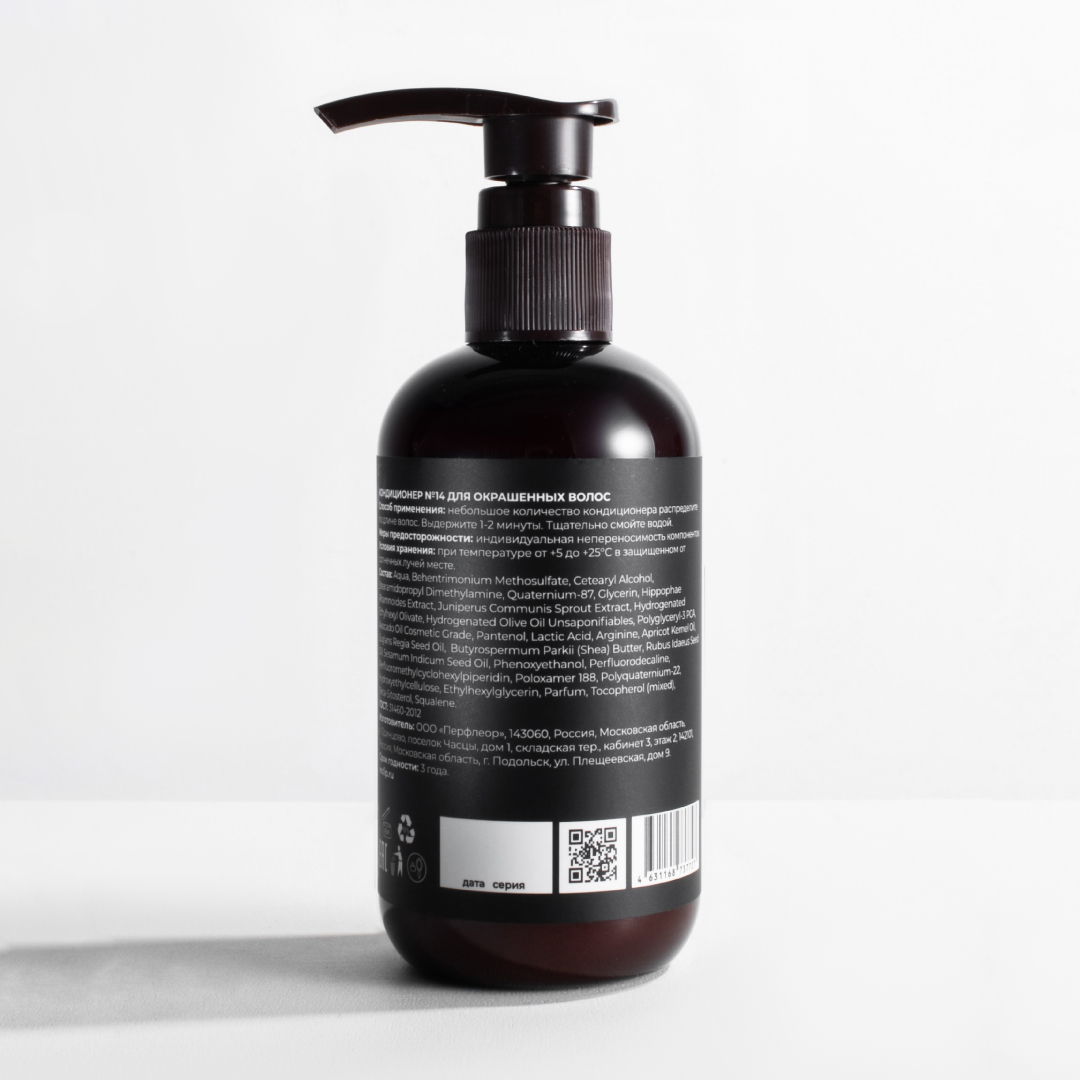 Кондиционер для окрашенных волос №14 – заключительная часть ухода за окрашенными волосами. Средство восстанавливает баланс влажности, защищает волосы от нежелательного влияния внешних факторов и придаёт эффект ламинирования. Поэтому волосы становятся блестящими, гладкими и шелковистыми.