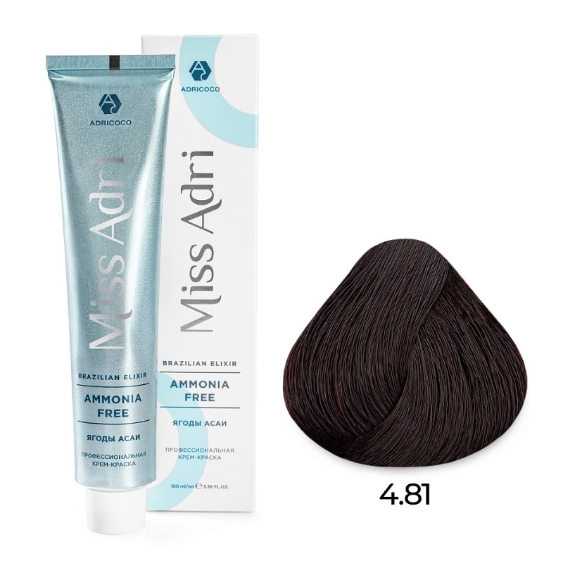 Крем-краска для волос ADRICOCO Miss Adri Brazilian Elixir Ammonia free оттенок 4.81 коричневое какао пепельное 100 мл