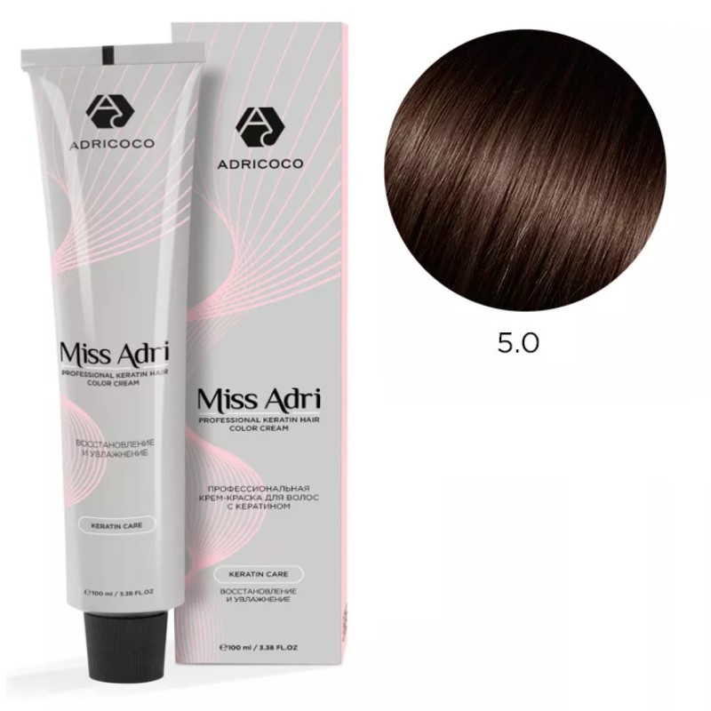 Крем-краска для волос ADRICOCO Miss Adri оттенок 5.0 Светлый коричневый 100 мл
