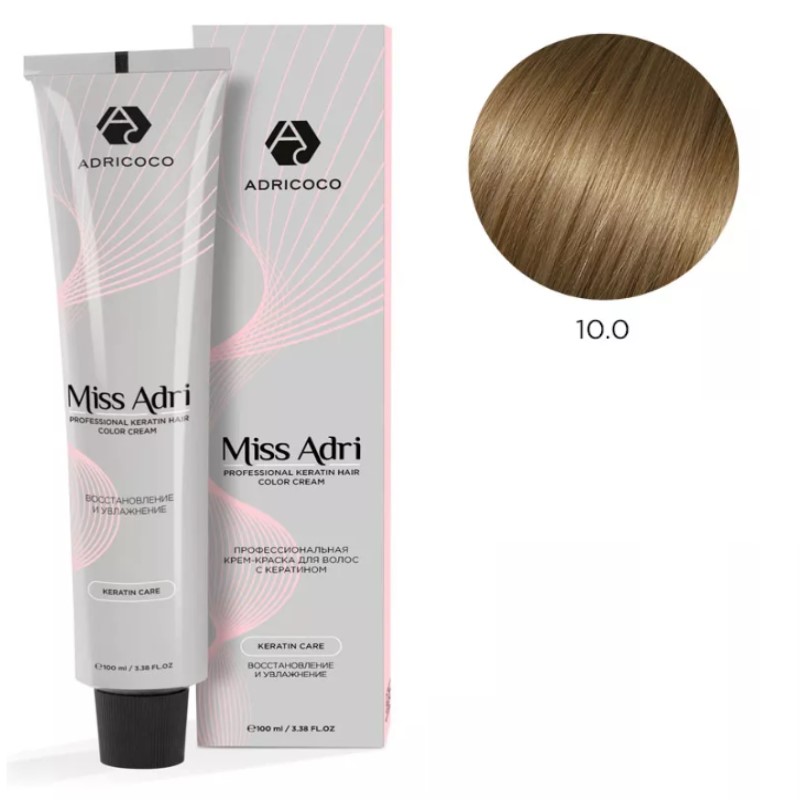 Крем-краска для волос ADRICOCO Miss Adri оттенок 10.0 Платиновый блонд 100 мл