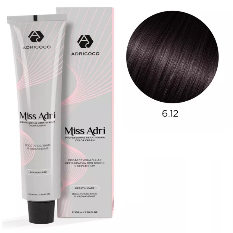 Крем-краска для волос ADRICOCO Miss Adri оттенок 6.12 Темный блонд пепельный перламутровый 100 мл