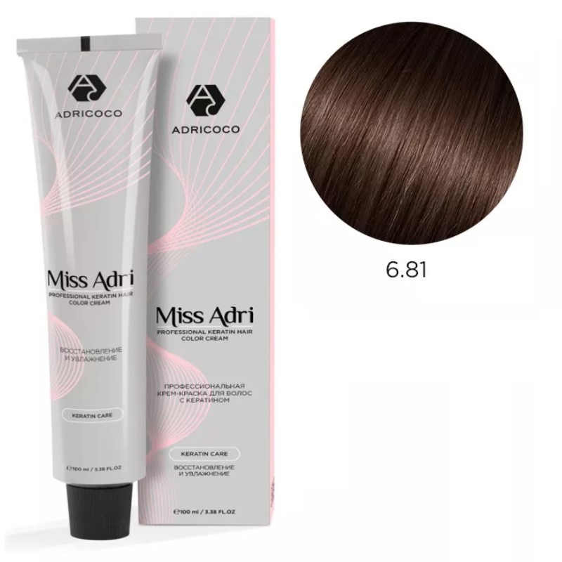 Крем-краска для волос ADRICOCO Miss Adri оттенок 6.81 Темный блонд капучино пепельный 100 мл