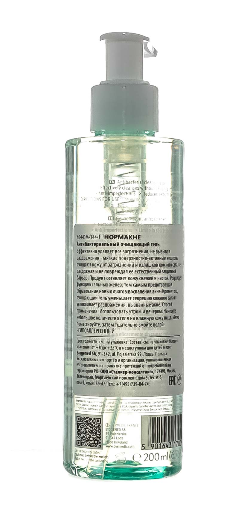 Антибактериальный гель для очищения ДЕРМЕДИК НОРМАКНЕ, 200 мл