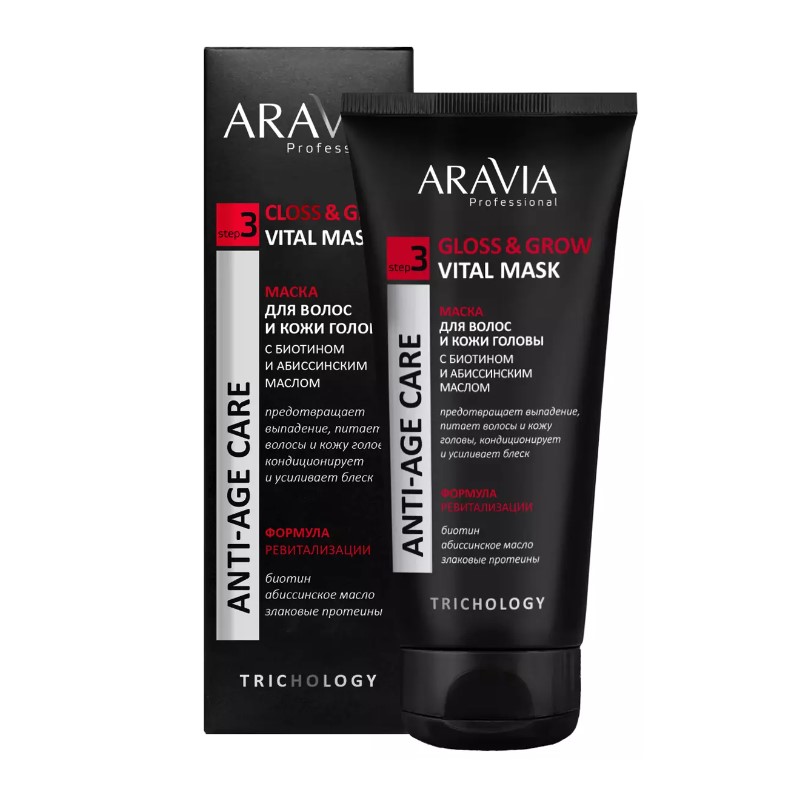 arav_B038, ARAVIA Маска для волос и кожи головы с биотином и абиссинским маслом, 200 мл