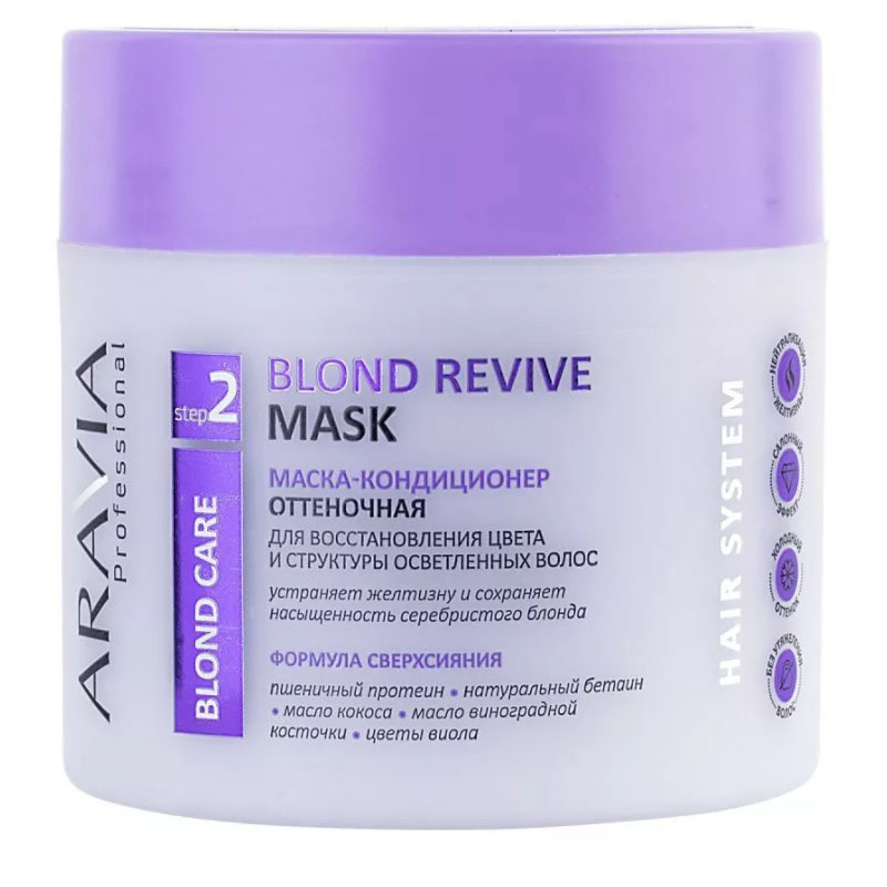Маска-кондиционер оттеночная для восстановления цвета и структуры осветленных волос Blond Revive Mask, 300 мл ARAVIA