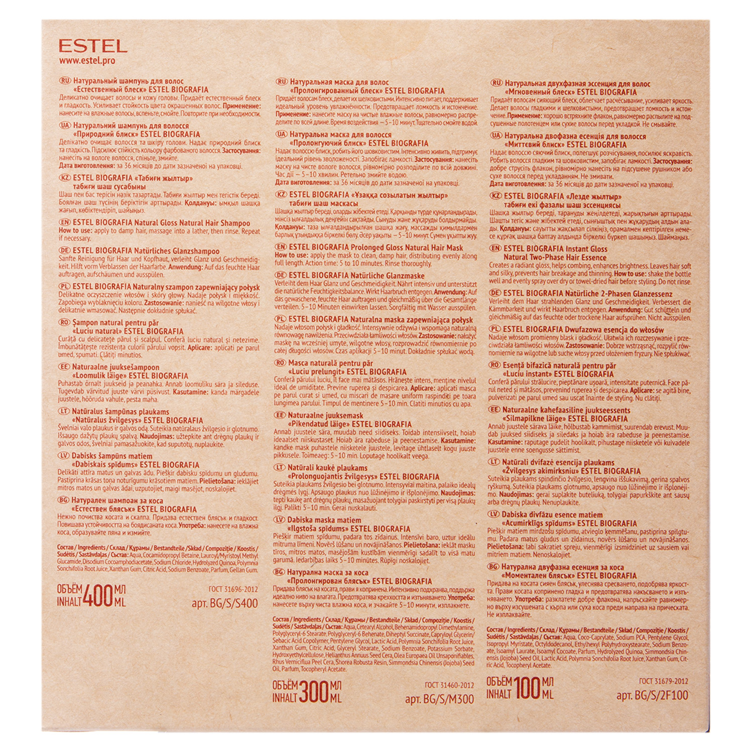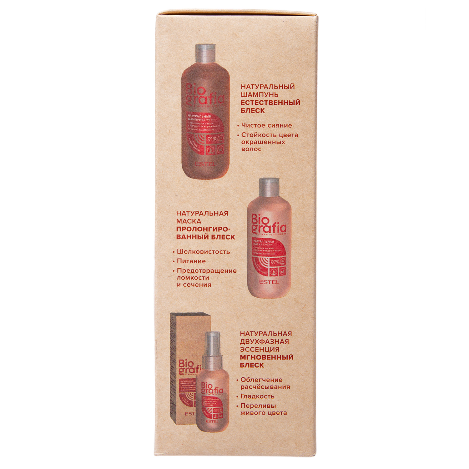 Набор «Естественный блеск»: Шампунь, 400 мл + Маска, 300 мл + Эссенция, 100 мл ESTEL