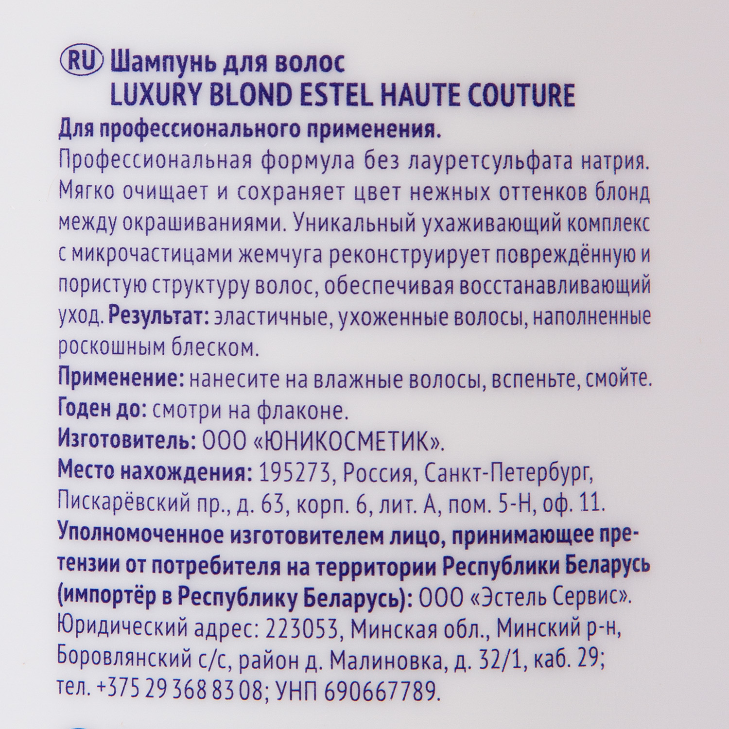 Шампунь для волос Blond Haute Couture, 1000 мл ESTEL