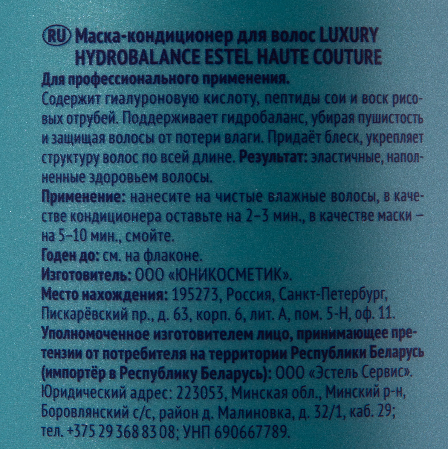 Маска-кондиционер для волос Hydrobalance Haute Cuture, 1000 мл ESTEL