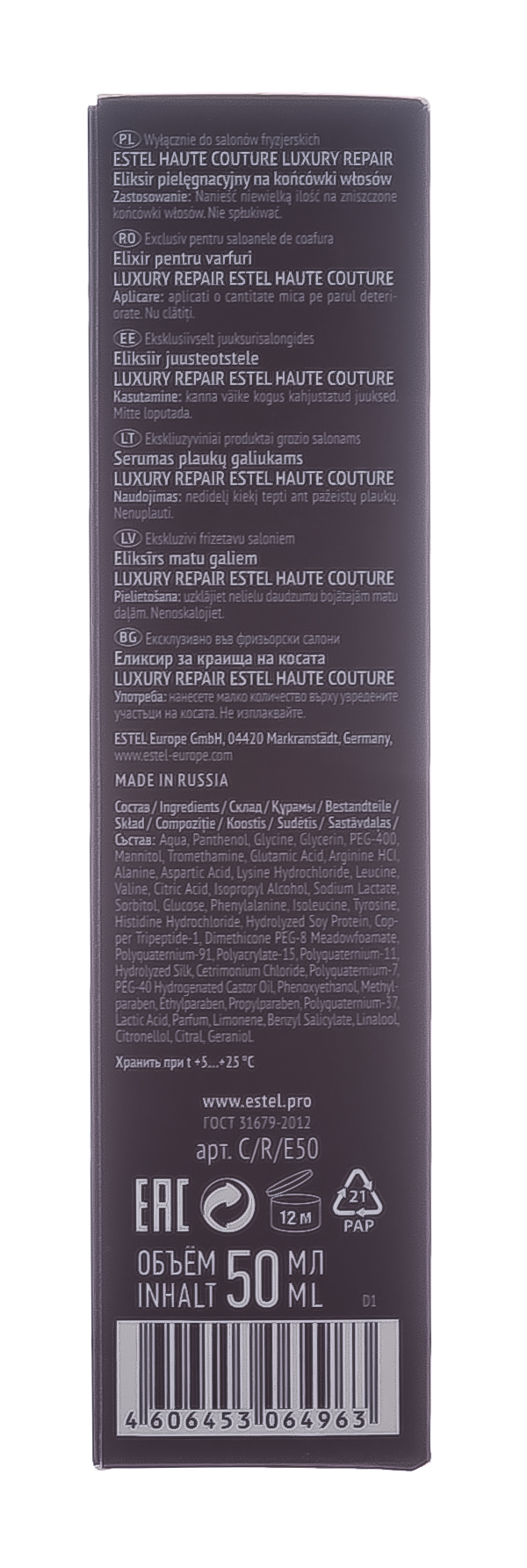 Один из важных этапов восстановления волос — реконструкция секущихся кончиков. Вдохните новую жизнь с помощью эликсира Luxury Repair. Активные компоненты в составе разглаживают, увлажняют, питают и распутывают кончики волос, возвращая им природную красоту.