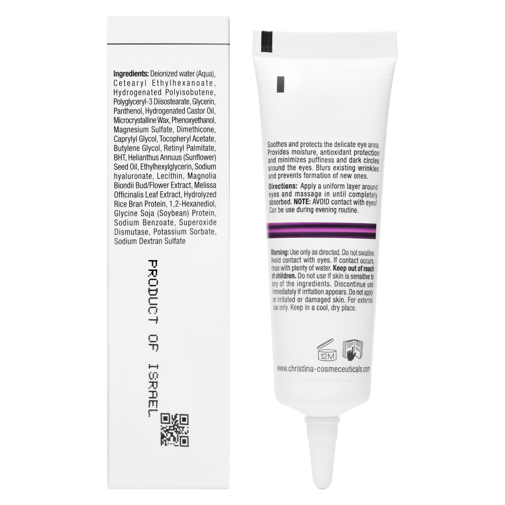 Применение: Нанесите небольшое количество средства на кожу вокруг глаз. Легкими массирующими и похлопывающими движениями внедрите до полного впитывания. Использовать во время вечернего ухода.