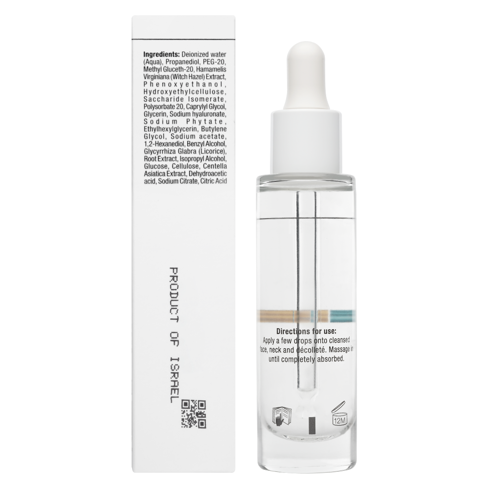 Состав: Deionized water (Aqua), Citric Acid, Phenoxyethanol, Caprylyl Glycol, 1,2-Hexanediol, Benzyl Alcohol, Butylene Glycol, Cellulose, Centella Asiatica Extract, Dehydroacetic acid, Ethylhexylglycerin, Glucose, Glycerin, Glycyrrhiza Glabra (Licorice) Root Extract, Hamamelis Virginiana (Witch Hazel) Extract, Hydroxyethylcellulose, Isopropyl Alcohol, Methyl Gluceth-20, PEG-20, Polysorbate 20, Propanediol, Saccharide Isomerate, Sodium acetate, Sodium Citrate, Sodium hyaluronate, Sodium Phytate.