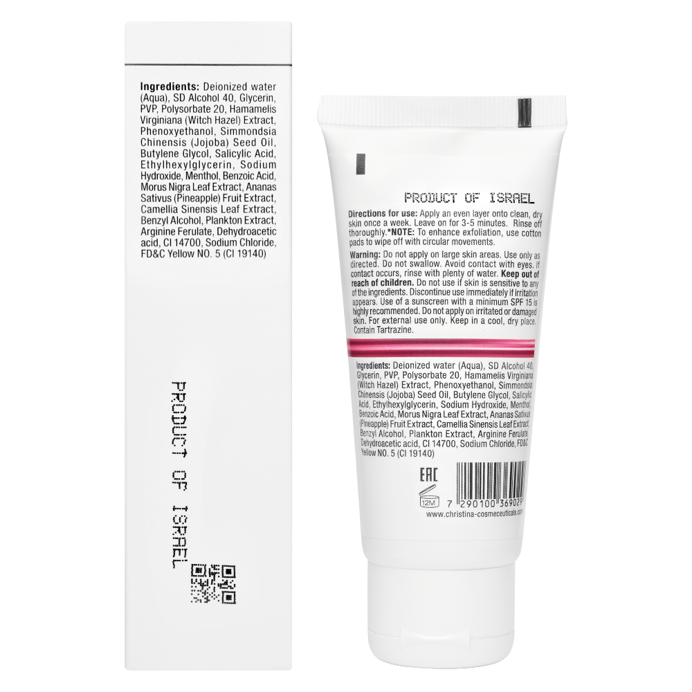 Планктонные водоросли – одноклеточные водоросли – вырабатывают большое количество кислорода и поставляют его в клетки. Комплекс на основе салициловой кислоты, экстракта шелковицы и ананаса мягко отшелушивает и выравнивает тон. Гамамелис снимает покраснения и воспаления, способствуя заживлению повреждений и снятию воспалений.
