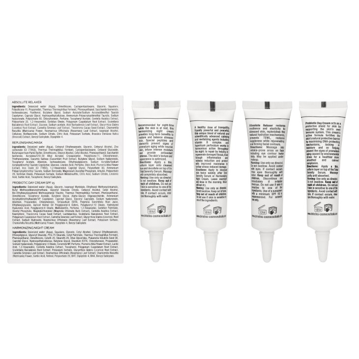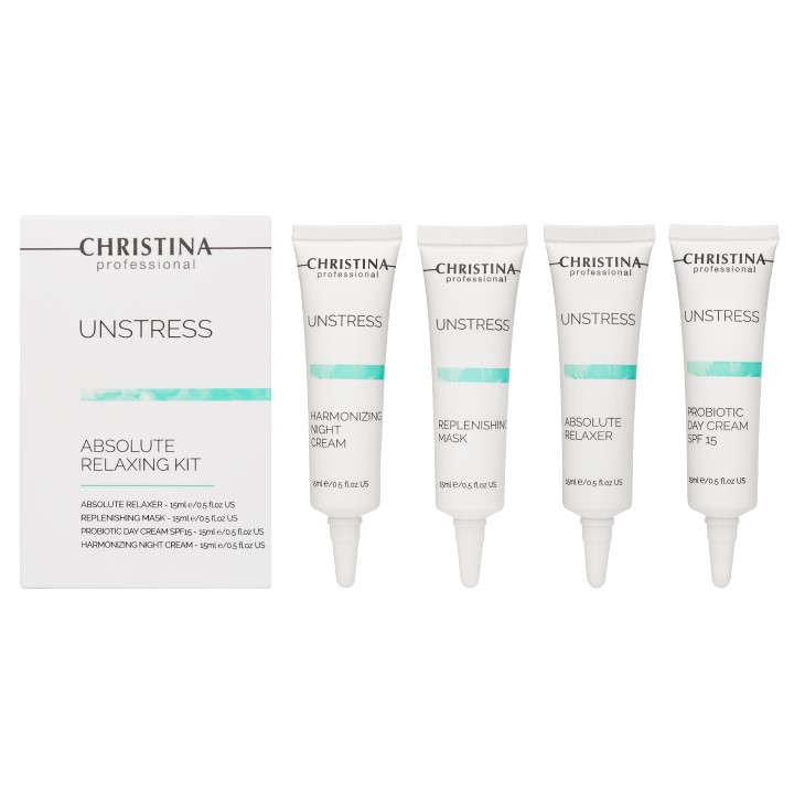 Входящие в набор CHRISTINA Unstress Absolute Relaxing Kit средства помогают быстро устранить повреждения, вызванные стрессом, и одновременно предотвращают их благодаря укреплению естественных механизмов защиты иммунитета кожи.