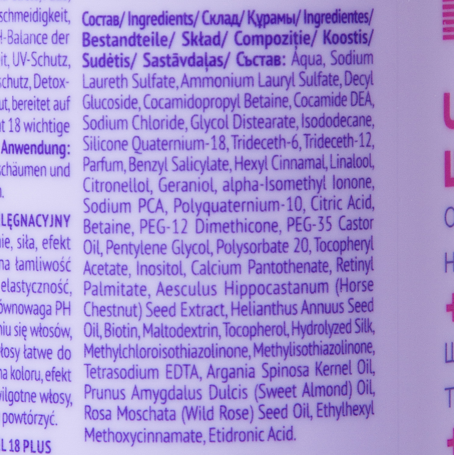 Шампунь разработан для многофункционального ежедневного ухода за волосами и кожей головы. Объединяет 18 важных свойств, необходимых красивым волосам: