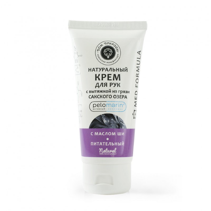 Пеломарин — активный комплекс на основе вытяжки из грязи Сакского озера, разработанный специалистами ТМ «Мануфактура ДОМ ПРИРОДЫ». Все его компоненты обладают высокой бидоступностью — преодолевают липидный барьер кожи и проникают в мембраны клеток, снабжая их витаминами, минералами, аминокислотами и микроэлементами. Питательное масло ши повышает упругость и эластичность кожи. Экстракт зародышей пшеницы активизирует процессы обновления клеток. Состав: вода подготовленная, полиглицериды жирных кислот, цетеариловый спирт, масло ши, масло какао, активный комплекс Пеломарин (вытяжка из грязи иловой сульфидной Сакского озера, гидролизованные протеины пшеницы, L-карнитин, витамин РР, витамин С стабилизированный), экстракт зародышей пшеницы, экстракт календулы, экстракт ромашки, глицерин, сорбитан каприлат, сквалан, тетранатриевая соль двухуксусной L-глютаминовой кислоты, натрия пирролидонкарбонат, ксантановая камедь, каприлик/каприк триглицерид, гиалуроновая кислота, лимонная кислота, янтарная кислота, бензиловый спирт, оксиметилглицин, эфирные масла лимона, лаванды, масляный экстракт ванили. Применение: нанести на сухую, чистую кожу рук.