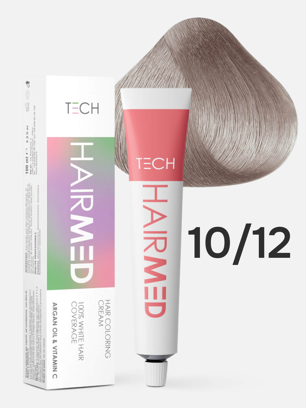 Перманентная крем-краска для волос HAIRMED Tech Hair Coloring Cream 10.12 с аргановым маслом, экстрактом цветков ромашки, глицерином и витамином С. Палитра включает в себя насыщенные, блестящие и переливающиеся оттенки, которые обеспечивают 100% покрытие седины и стойкость до 6-8 недель. Аргановое масло интенсивно питает волосы, защищает их от повреждения в процессе окрашивания, а также предотвращает выцветание пигментов от УФ-лучей. Экстракт ромашки укрепляет кутикулу волоса и защищает кожу головы от раздражения, зуда и шелушения. Глицерин и витамин С увлажняют структуру волос, нейтрализуют окислительные процессы и оказывают Anti-age эффект.