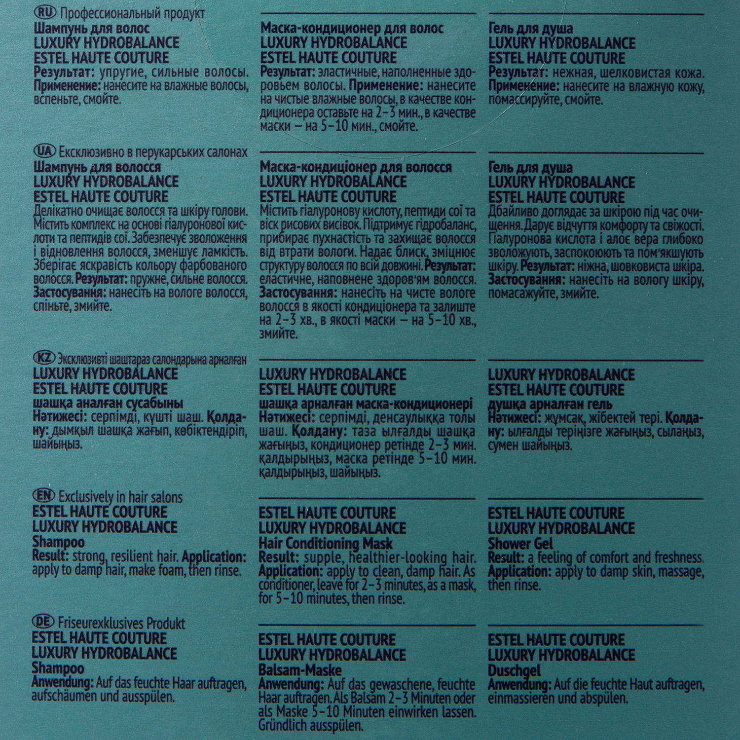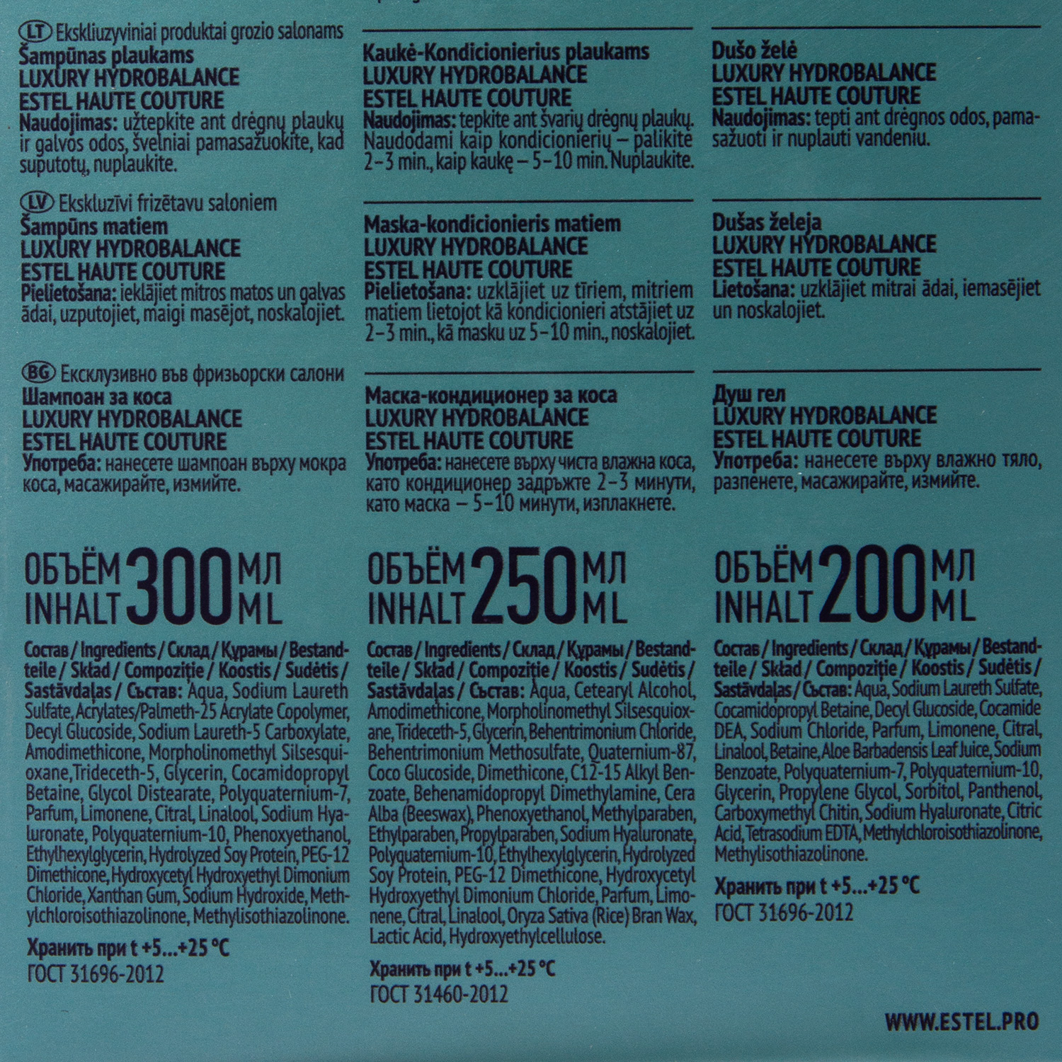 Набор Hydrobalance Haute Couture: Шампунь 300 мл, Маска-кондиционер 250 мл, Гель для душа 200 мл ESTEL