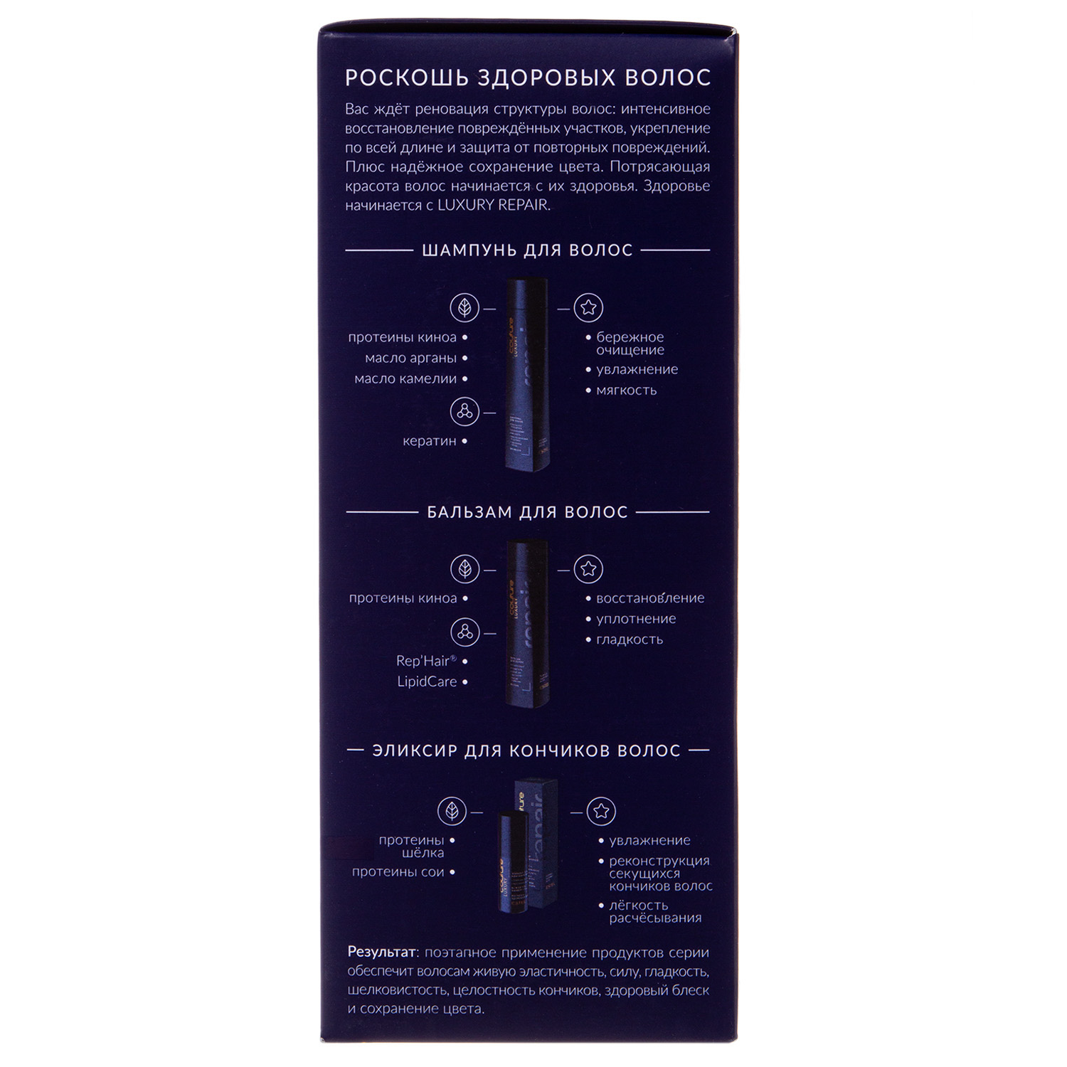 Вас ждёт реновация структуры волос: интенсивное восстановление повреждённых участков, укрепление по всей длине и защита от повторных повреждений. Плюс надёжное сохранение цвета. Потрясающая красота волос начинается с их здоровья. Здоровье начинается с Luxury Repair.