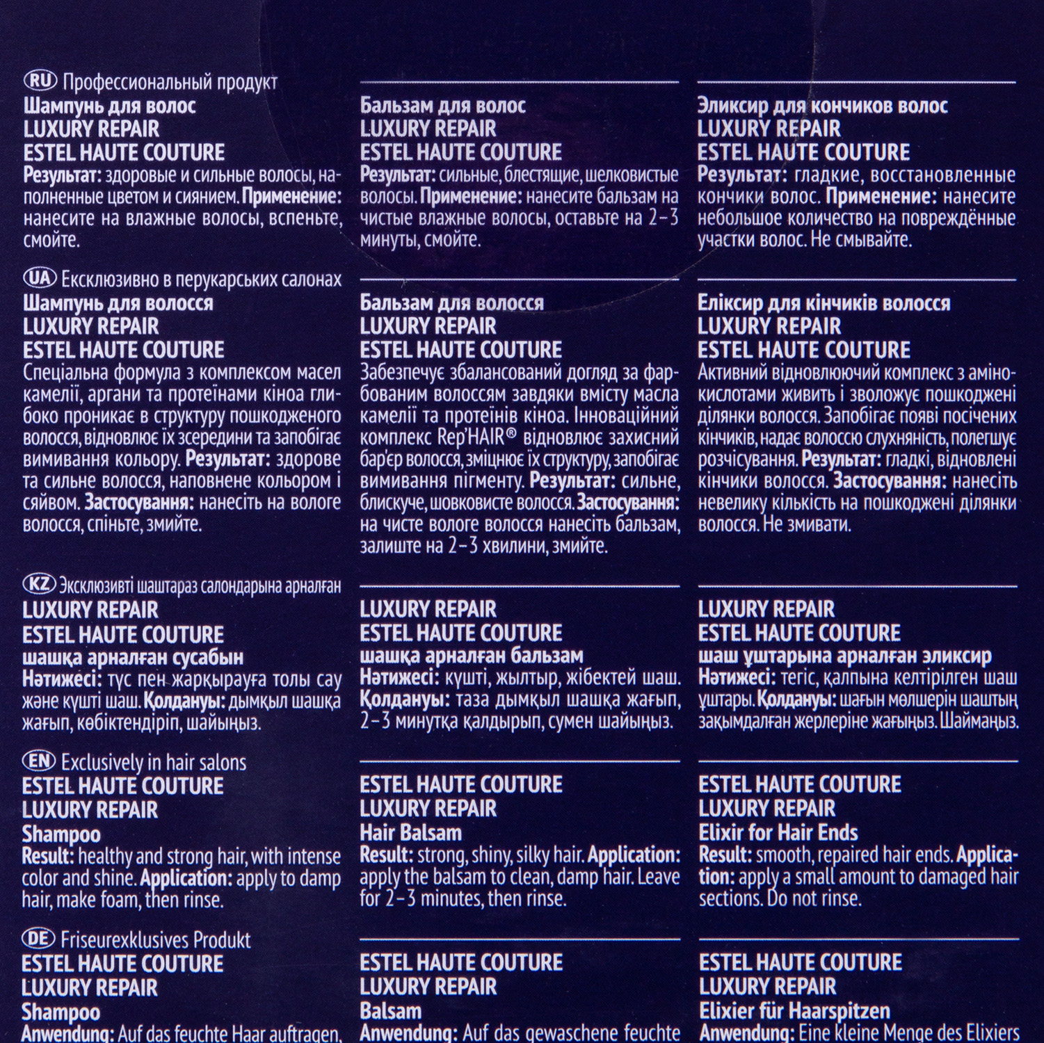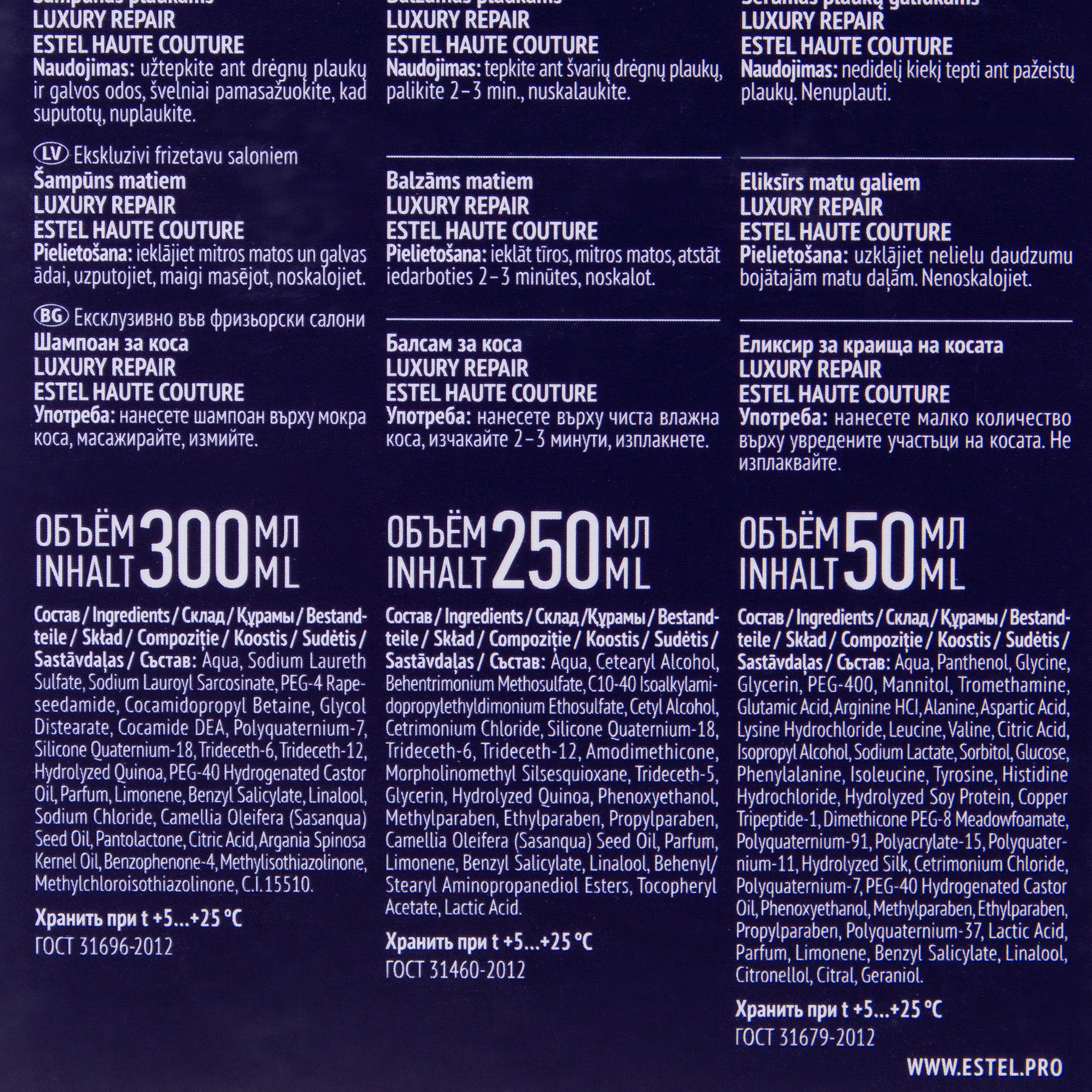 Набор Repair Haute Couture: Шампунь 300 мл, Бальзам 250 мл, Эликсир для кончиков 50 мл ESTEL