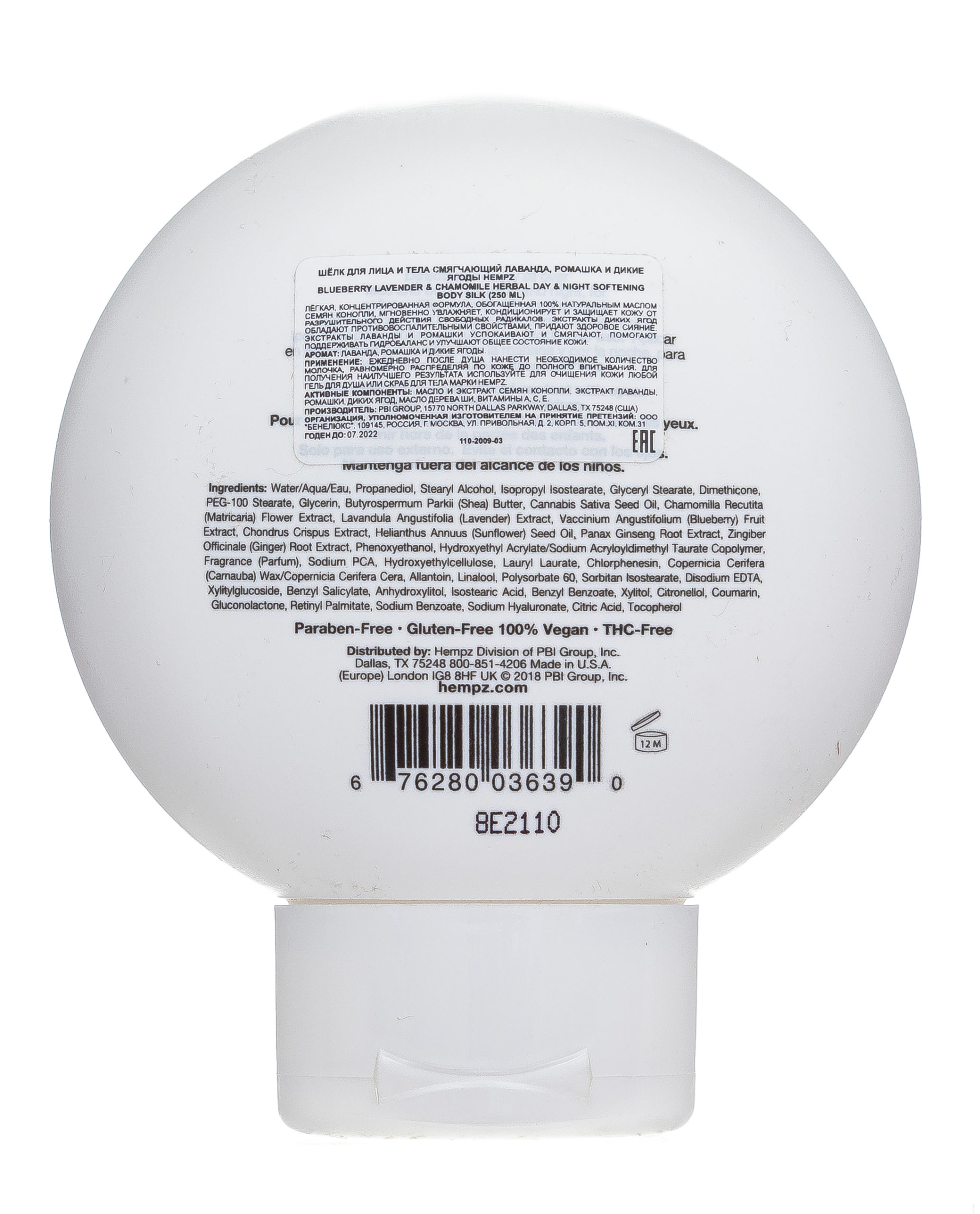 Шелк для лица и тела смягчающий «Лаванда, Ромашка и Дикие Ягоды» Blueberry Lavender & Chamomile Herbal Day & Night Softening Body Silk, 250 мл HEMPZ