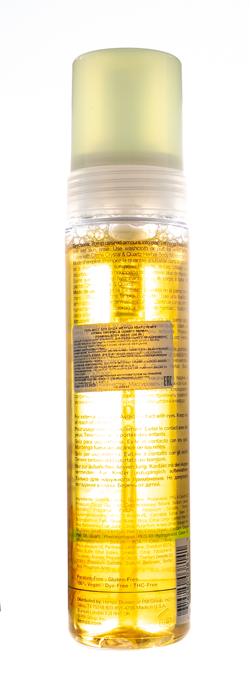 Спрей увлажняющий для лица, тела и волос с мерцающим эффектом Citrine Crystal & Quartz Herbal Face, Body & Hair Hydrating Mist, 150 мл HEMPZ