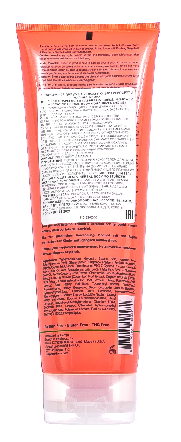 Кондиционер для душа Blushing Grapefruit & Raspberry Creme In Shower, 250 мл HEMPZ