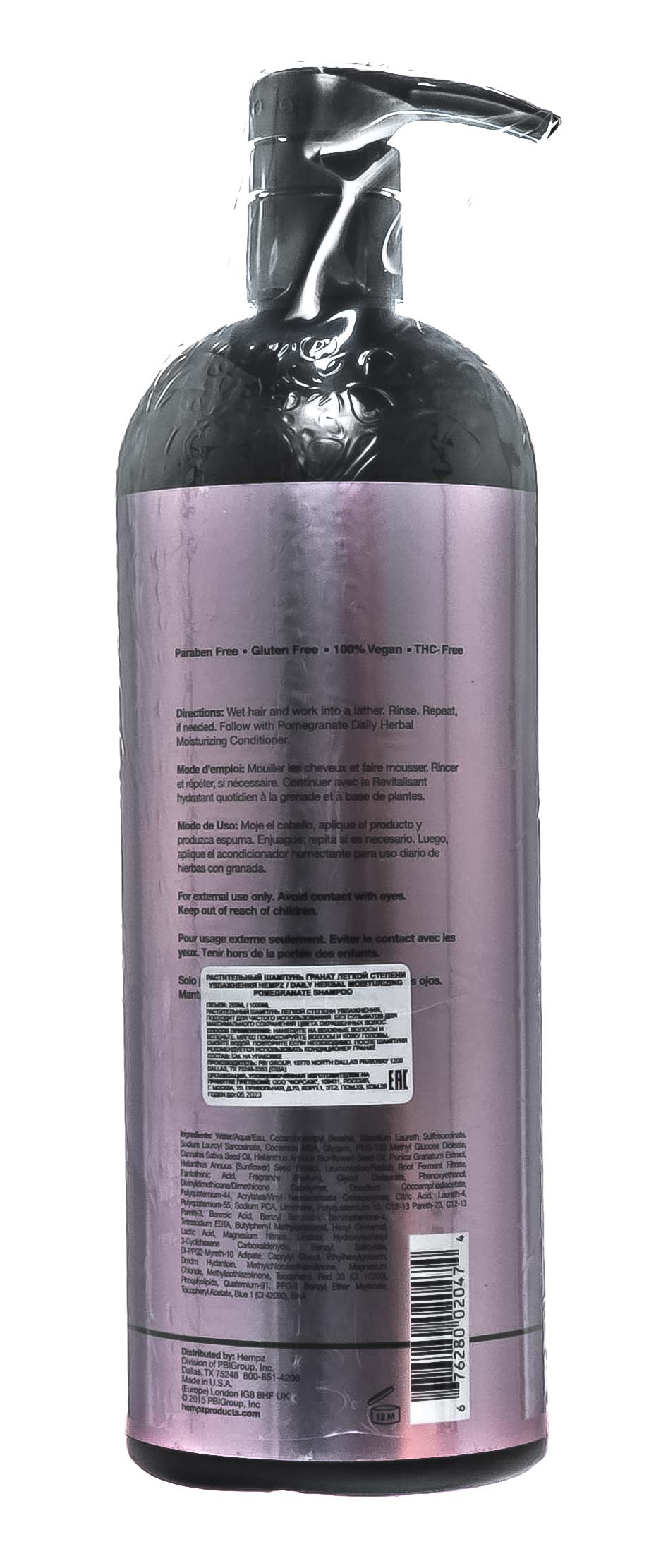 Шампунь растительный увлажняющий и разглаживающий Daily Herbal Moisturizing Pomegranate Shampoo, 1000 мл HEMPZ
