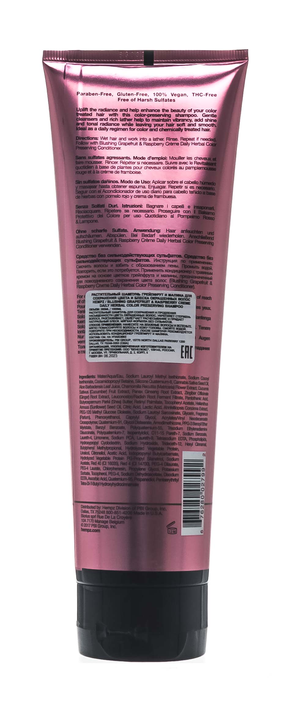 Шампунь растительный для сохранения цвета и блеска окрашенных волос Blushing Grapefruit & Raspberry Creme Shampoo, 265 мл HEMPZ