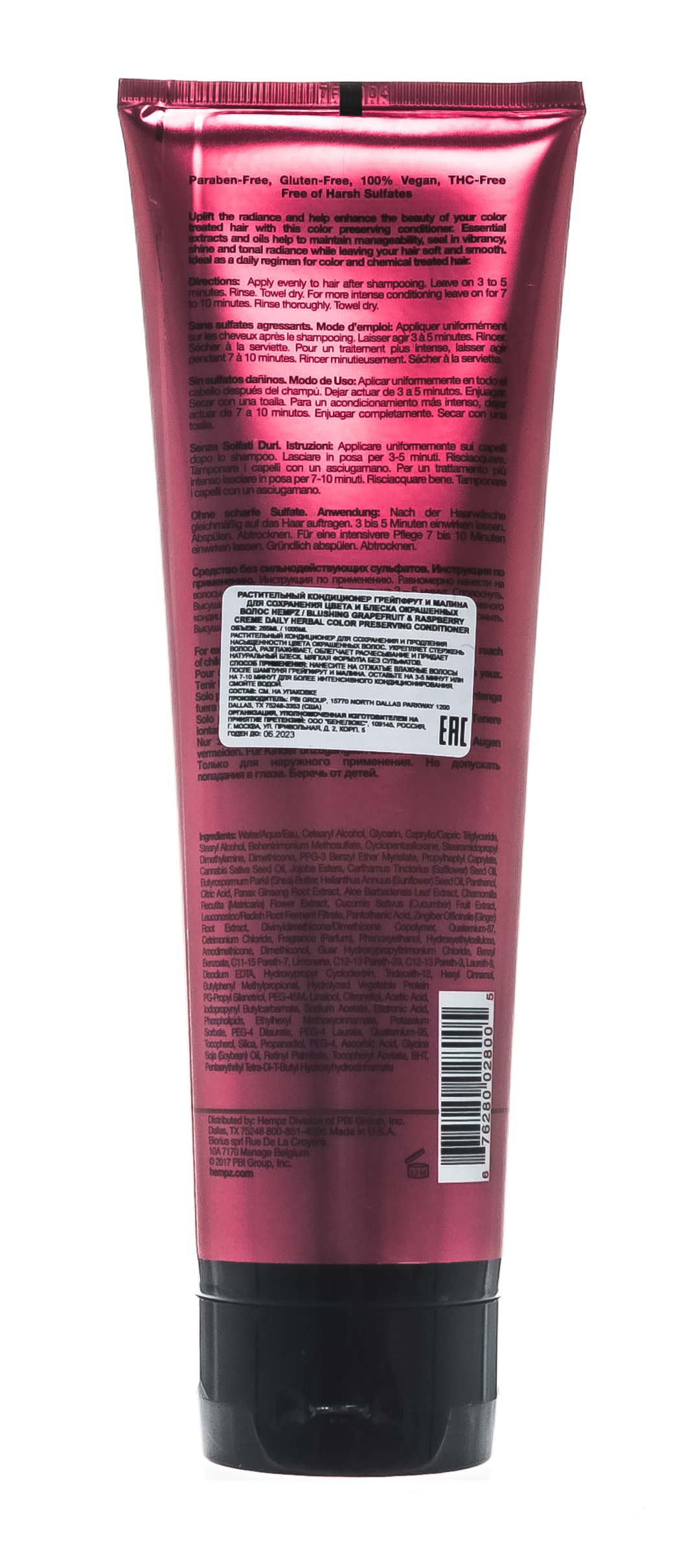 Кондиционер растительный для сохранения цвета и блеска окрашенных волос Blushing Grapefruit & Raspberry Creme Conditioner, 265 мл HEMPZ