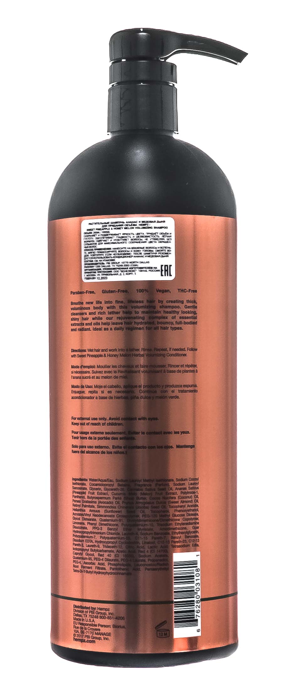 Шампунь растительный для придания объёма 1000 мл HEMPZ