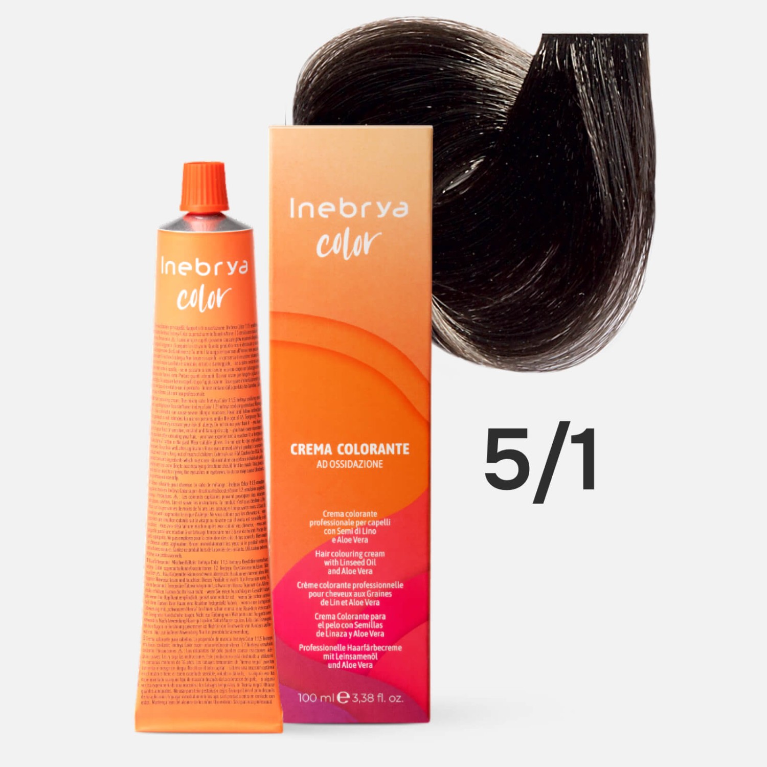 INEBRYA Color 5/1 Профессиональная крем-краска для волос Светлый каштановый пепельный 100 мл