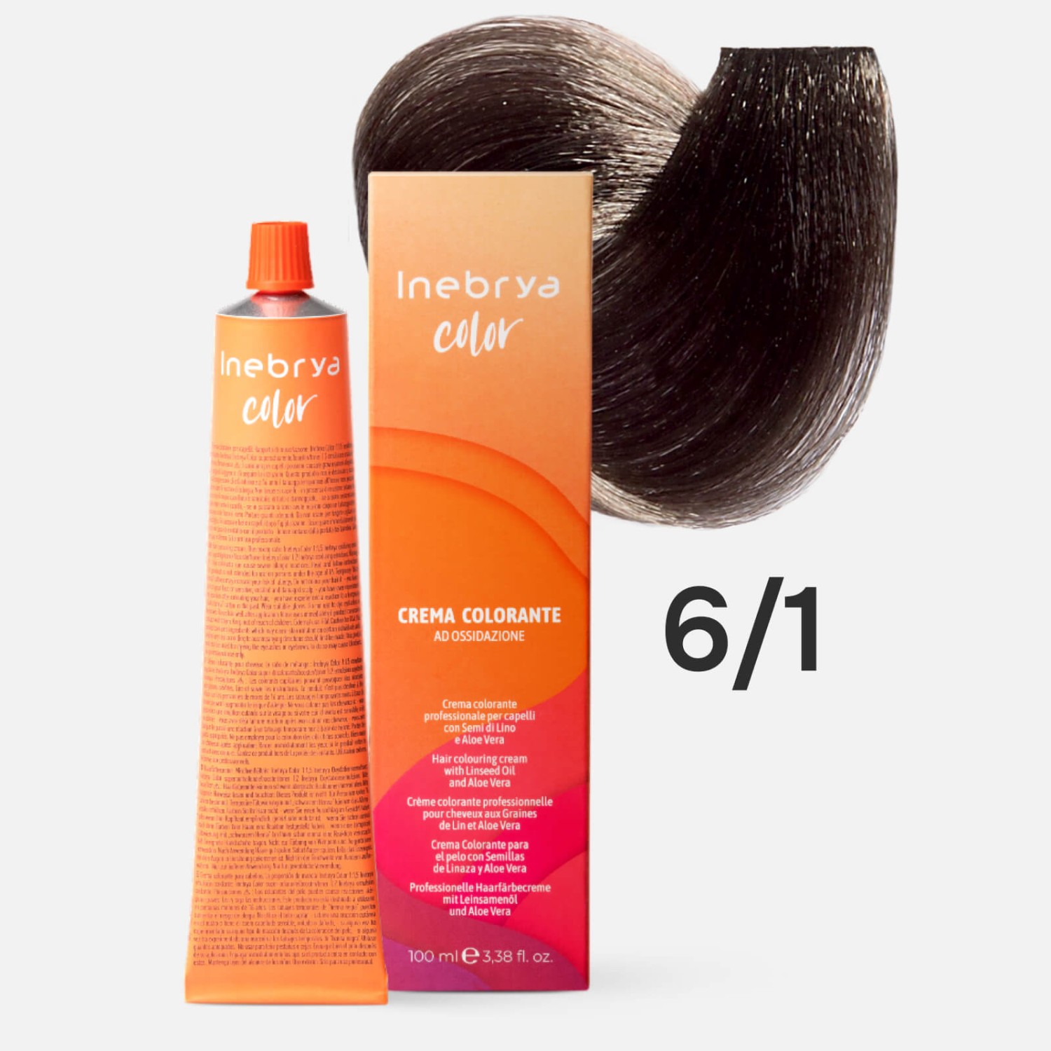 INEBRYA Color 6/1 Профессиональная крем-краска для волос Темный русый пепельный 100 мл