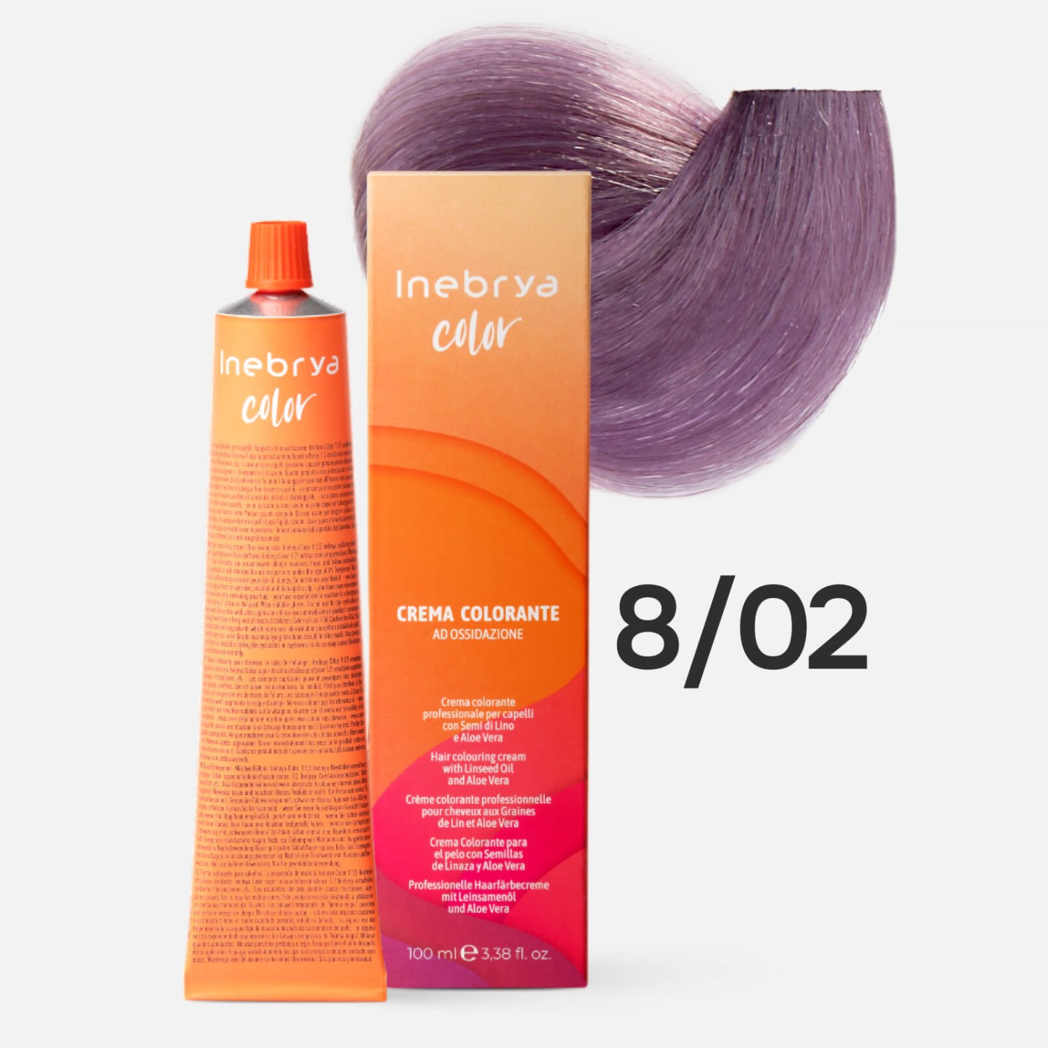 INEBRYA Color 8/02 Профессиональная крем-краска для волос Светлый русый Натуральный фиолетовый 100 мл