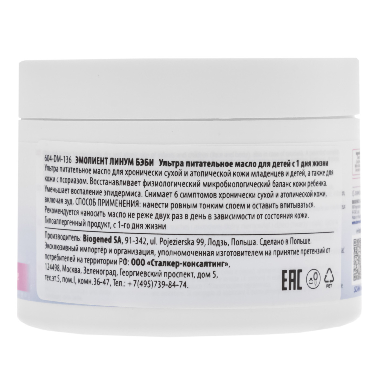 Интенсивное липидовосполняющее масло для детей с 1 дня жизни ДЕРМЕДИК ЭМОЛИЕНТ ЛИНУМ БЭБИ, 225 мл