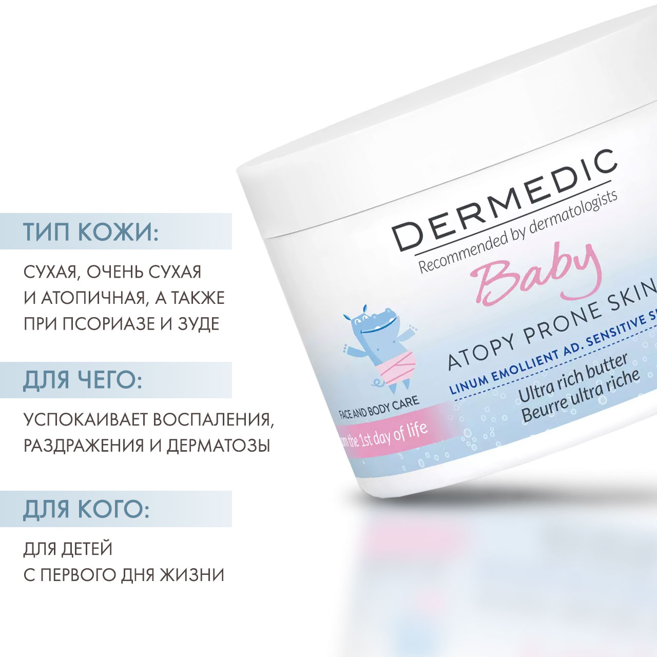 Атопичная кожа ,Зуд и раздражение ,Стянутость кожи ,Сухость |