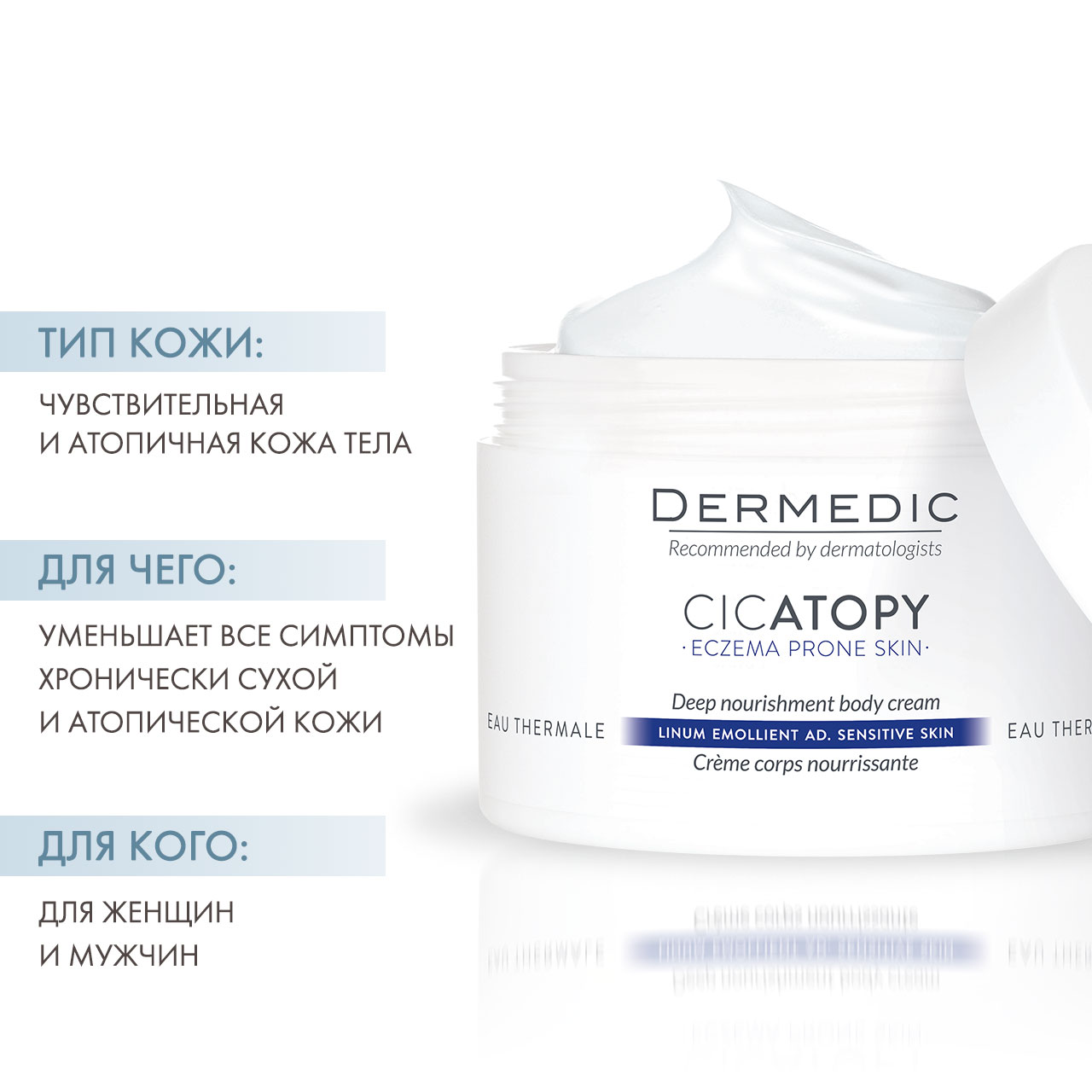 Атопичная кожа ,Зуд и раздражение ,Стянутость кожи ,Сухость |