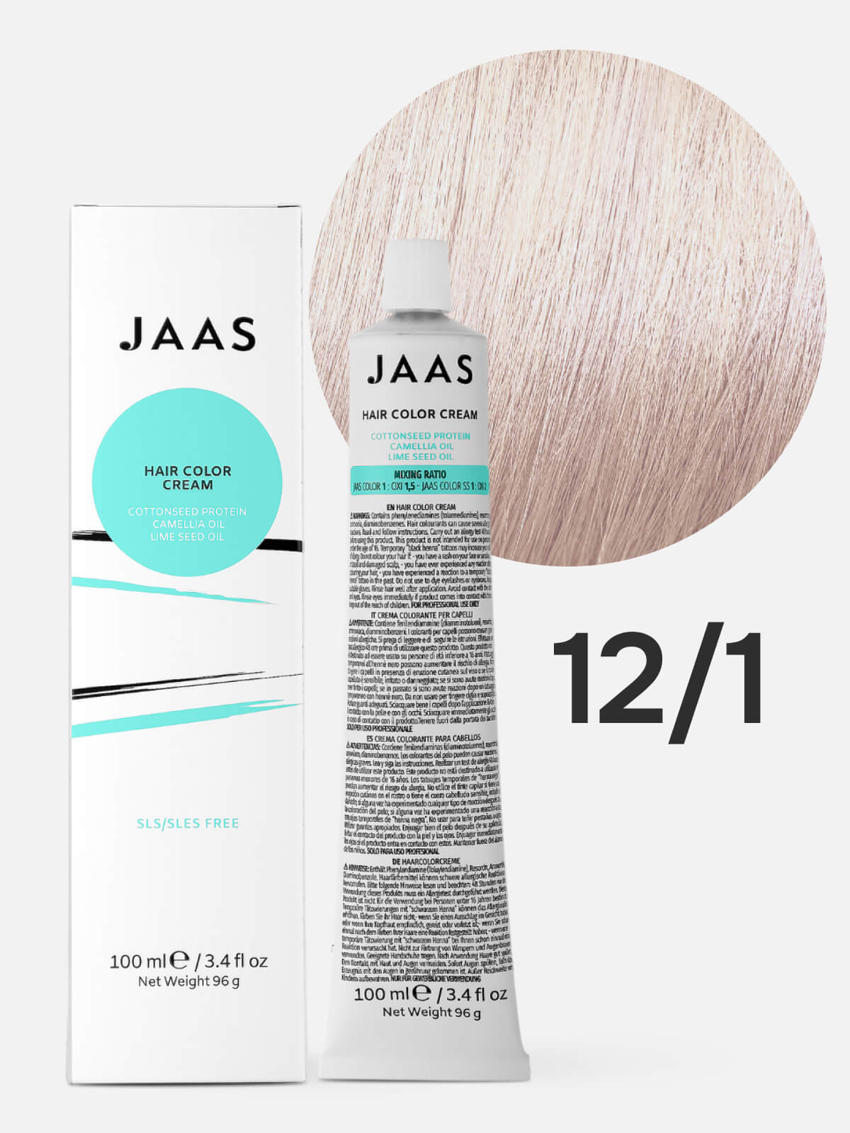 JAAS Hair Color Cream 12.1 — это перманентная краска для волос, которая обеспечивает питание и уход во время окрашивания.