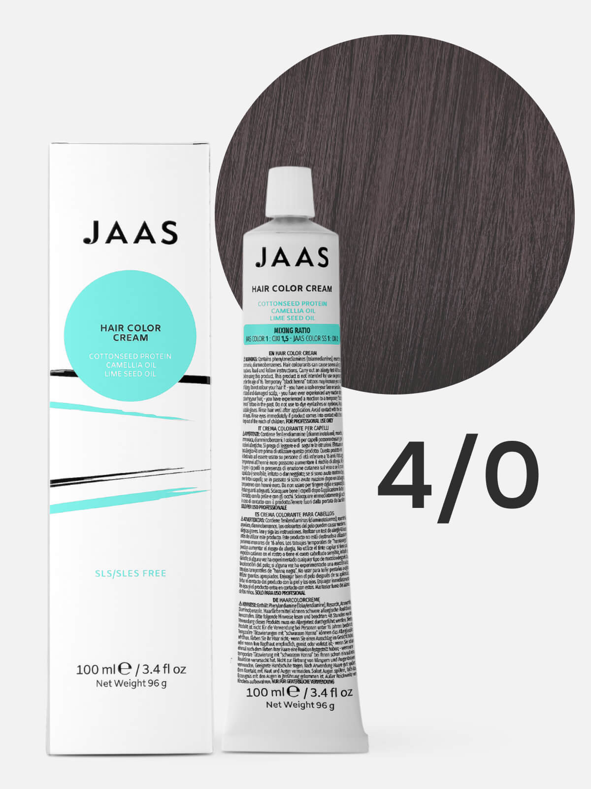 JAAS Hair Color Cream 4.0 — это перманентная краска для волос, которая обеспечивает питание и уход во время окрашивания.