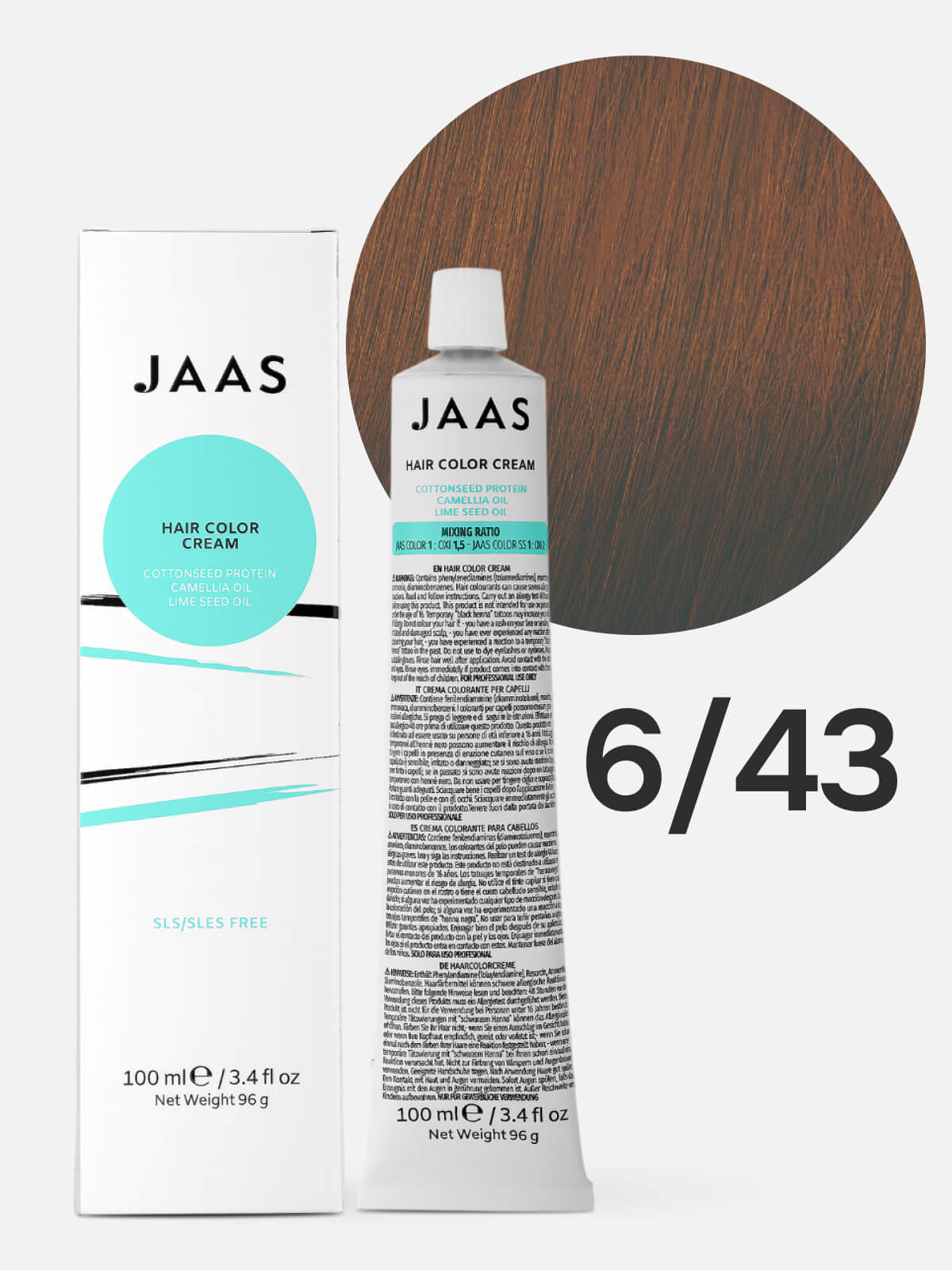 JAAS Hair Color Cream 6.43 — это перманентная краска для волос, которая обеспечивает питание и уход во время окрашивания.