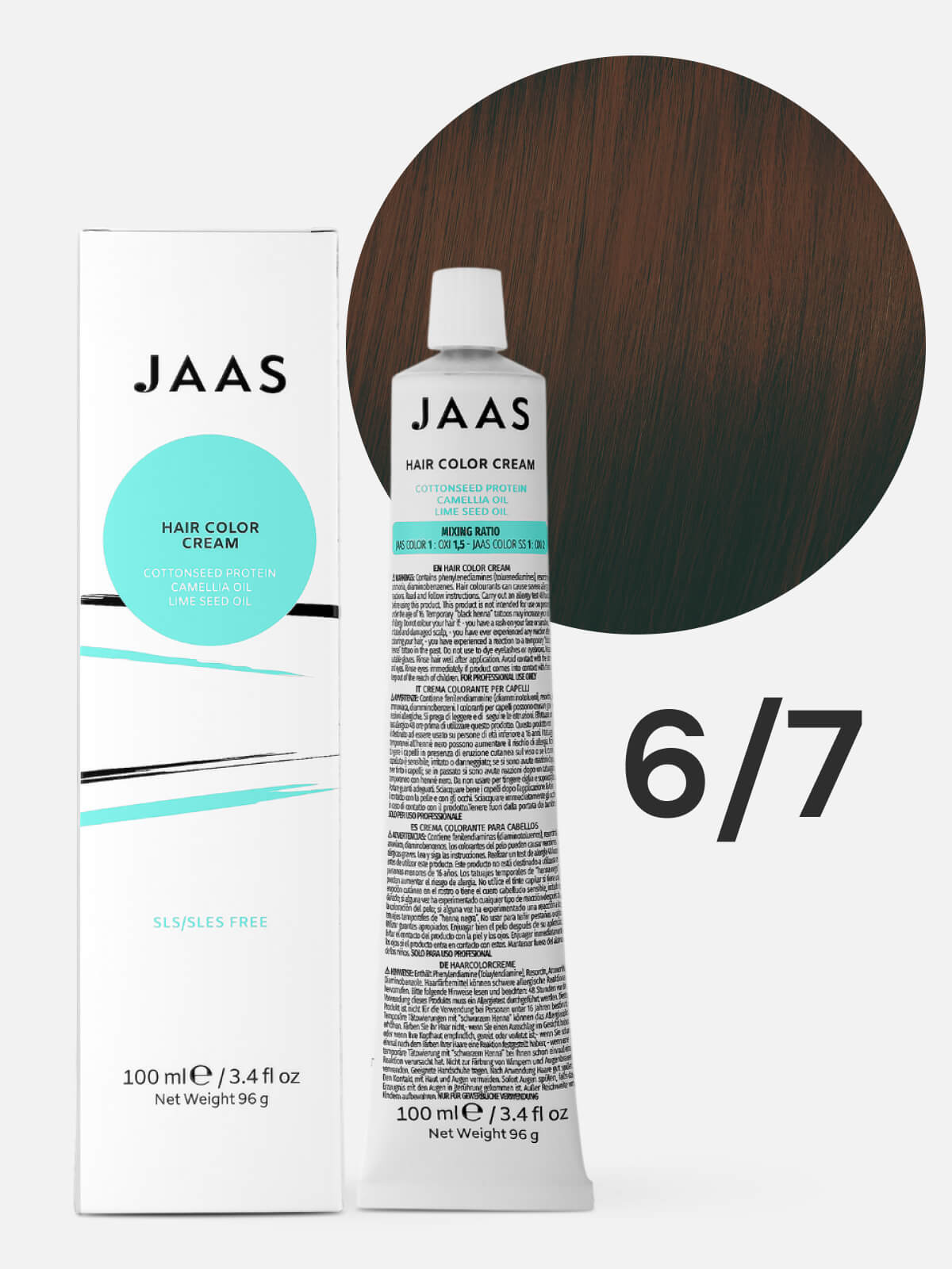 JAAS Hair Color Cream 6.7 — это перманентная краска для волос, которая обеспечивает питание и уход во время окрашивания.