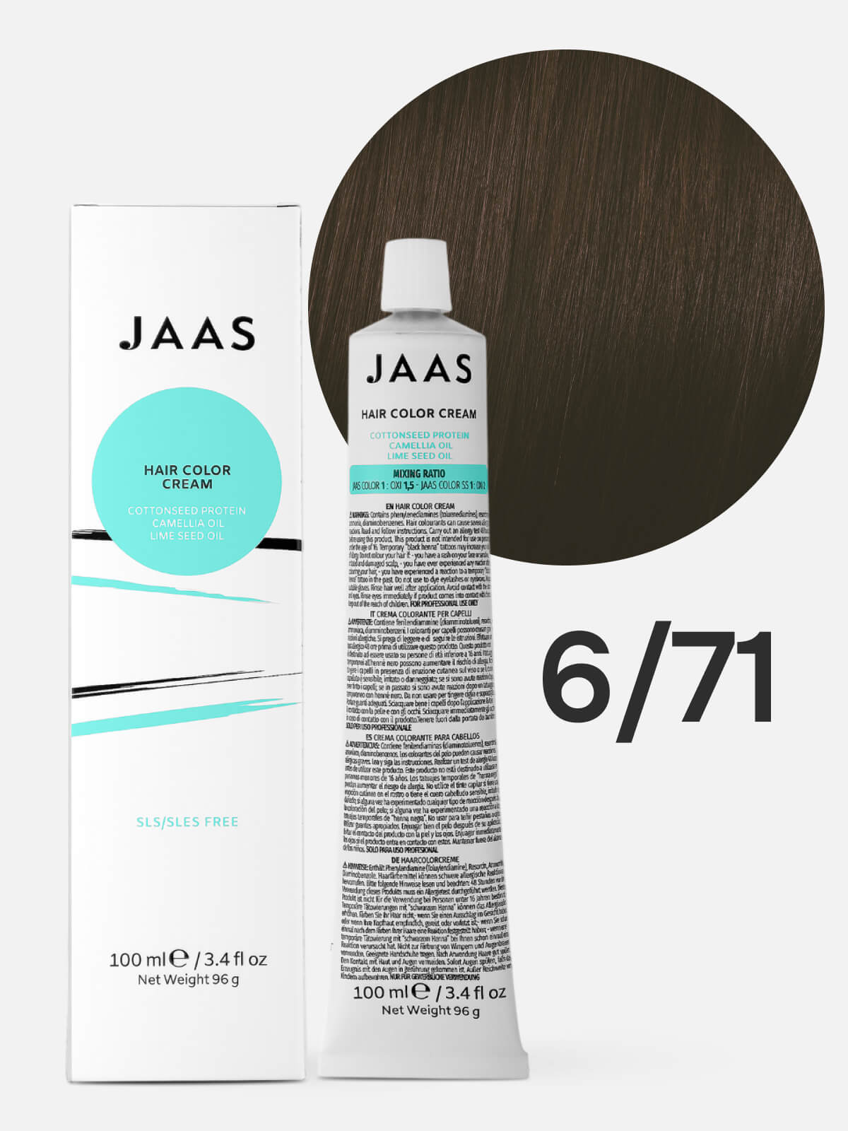 JAAS Hair Color Cream 6.71 — это перманентная краска для волос, которая обеспечивает питание и уход во время окрашивания.
