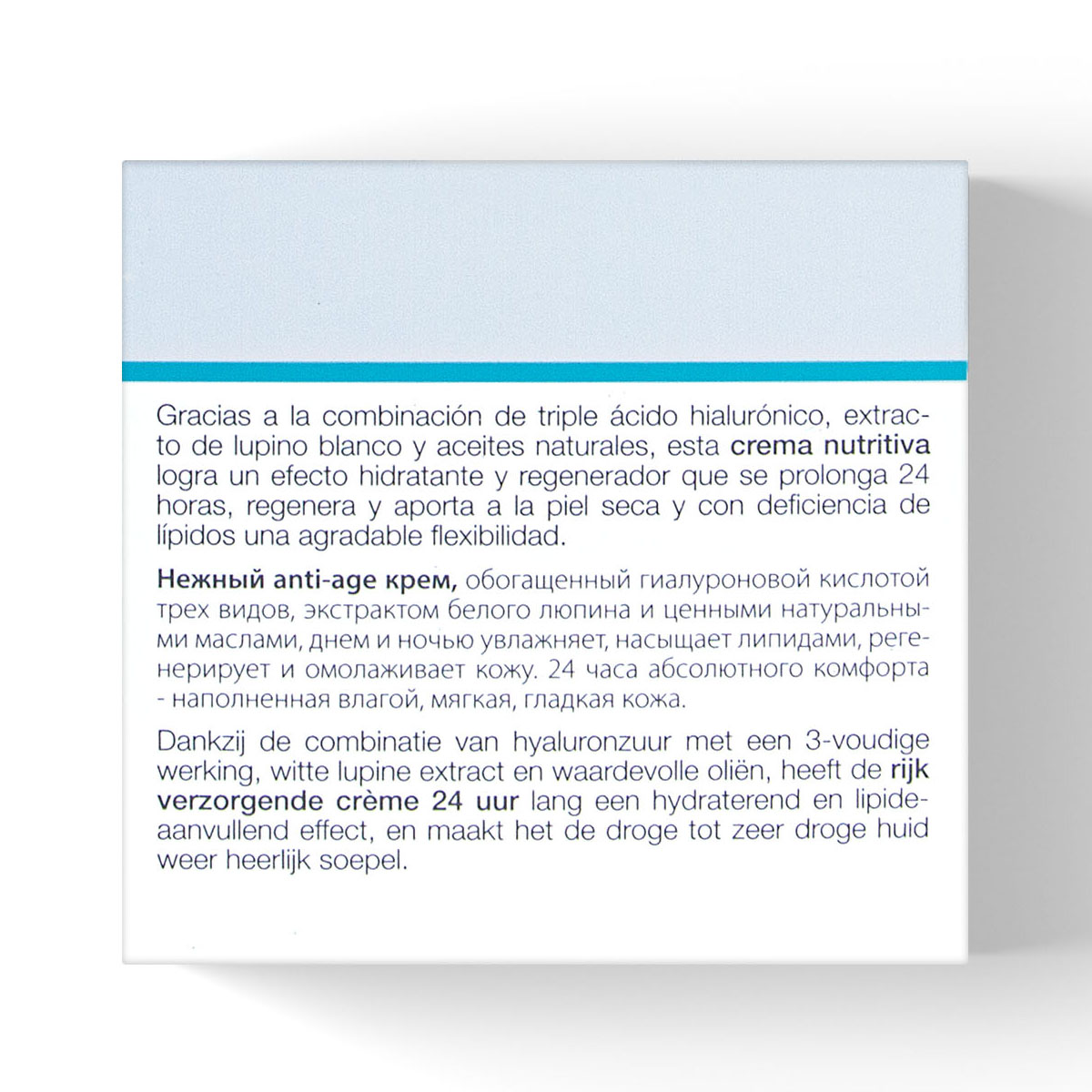 - экстракт белого люпина — богат пептидами и микроэлементами. Стимулирует синтез структурных белков и эпидермальных липидов, сохраняя качество рогового слоя. Укрепляет барьерную функцию кожи, придает коже максимальную упругость и эластичность