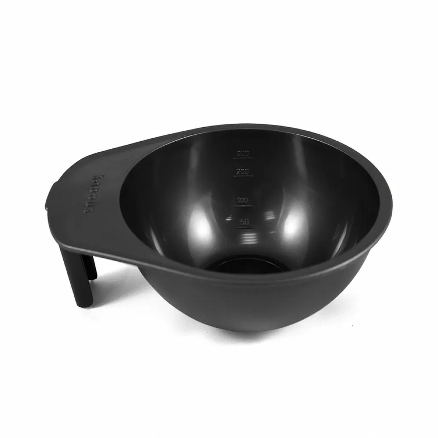 Миска выполнена из плотного пластика черного цвета. Удобная ручка служит дополнительной опорой и держателем. Внутри миски имеется шкала измерения. Объем: 300 мл. Материал: пластмасса.