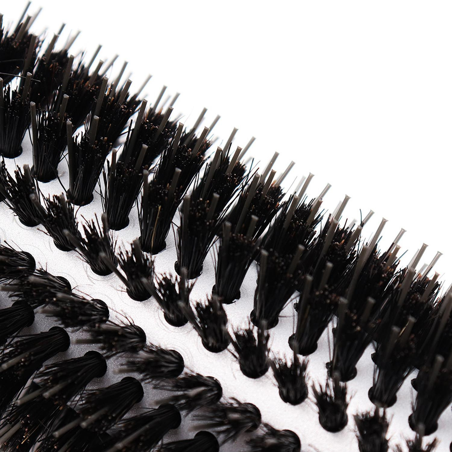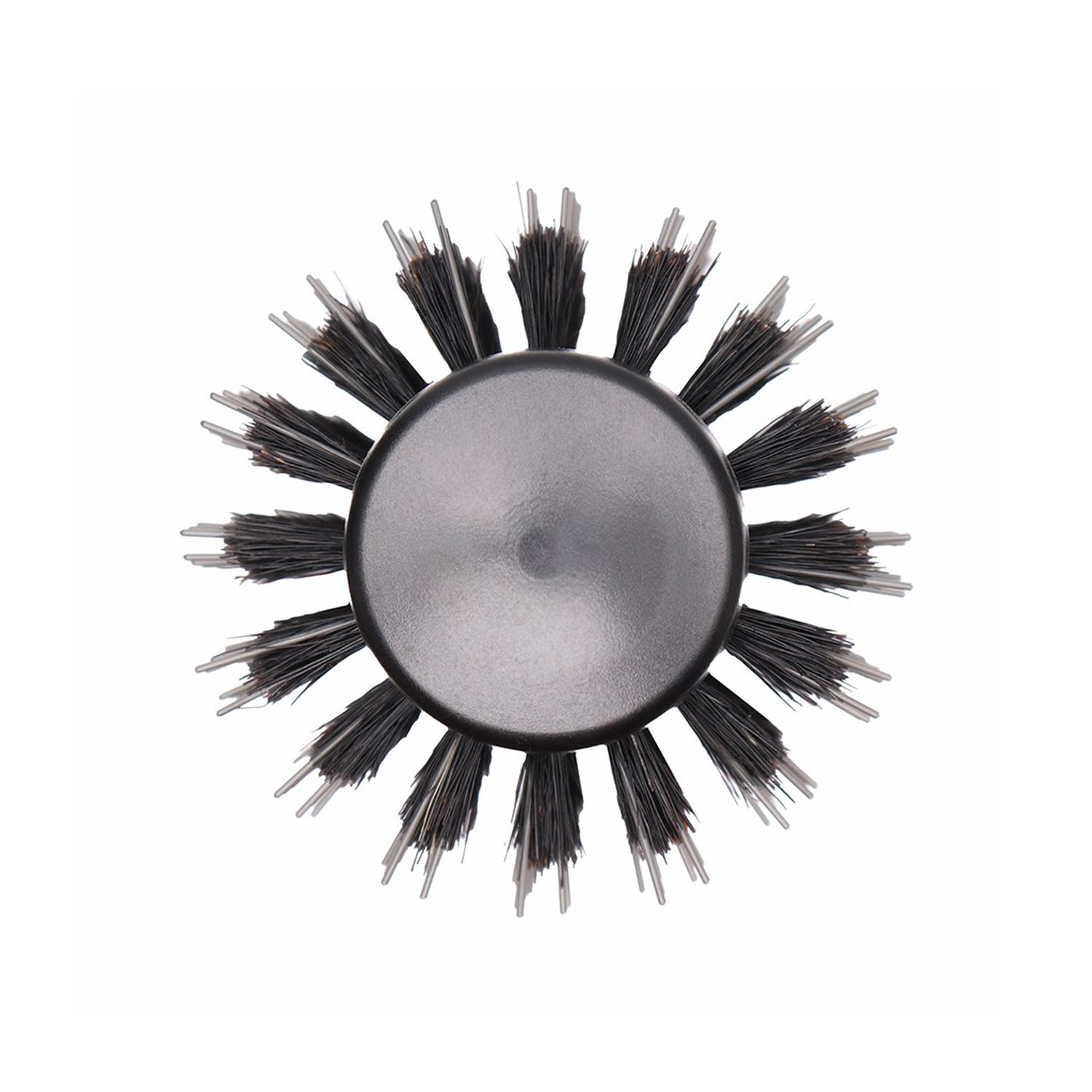 Профессиональный брашинг на алюминиевой основе с натуральной щетиной, платиковыми штифтами обеспечивает бережную укладку волос. выполнен из термостойкого пластика и имеет специальную эргономичную заостренную форму ручки для комфорта в работе и разделения прядей. Прорезиненое кольцо на ручке предотвращает скольжение в руках даже при интенсивной работе. Комбинирование натуральной щетины и штифтов обеспечивает лучший захват волос для получения максимальной гладкости. Используя разные по диаметру брашинги вы можете создавать укладки любых объемов и сложности. Размеры: Длина 298 мм; Длина рабочей поверхности 115 мм; Диаметр: 33 мм