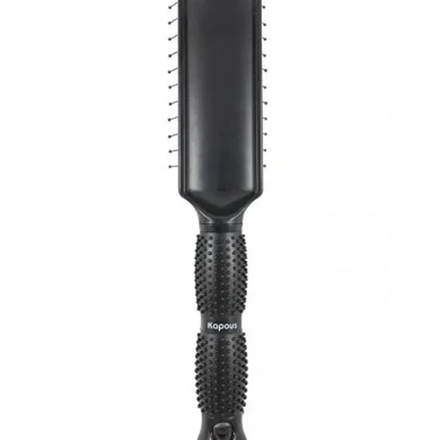 Лёгкая и комфортная щетка на термостойкой пластиковой основе облегчит укладку и сэкономит время при работе. Гибкие штифты с закругленными кончиками из высококачественного термостойкого ионного нейлона обеспечивают максимальный захват и контроль над волосами во время работы, натуральная щетина, расположенная по углом к основанию обеспечивает исключительное «выглаживание» волос, делая их шелковистыми и блестящими. Сквозные отверстия в корпусе щетки продуваются воздухом фена, что обеспечивает быстрое высыхание волос и фиксацию результата. Удобная прорезиненная ручка со специальным рельефным покрытием предотвращает скольжение. Использование щетки «Ультра блеск» «Kapous «позволяет выполнять классическую укладку, выпрямлять волосы, создавать прикорневой объём и объем по длине. Размеры: Длина: 245 мм; Ширина: 44 мм; Длина рабочей поверхности: 115 мм