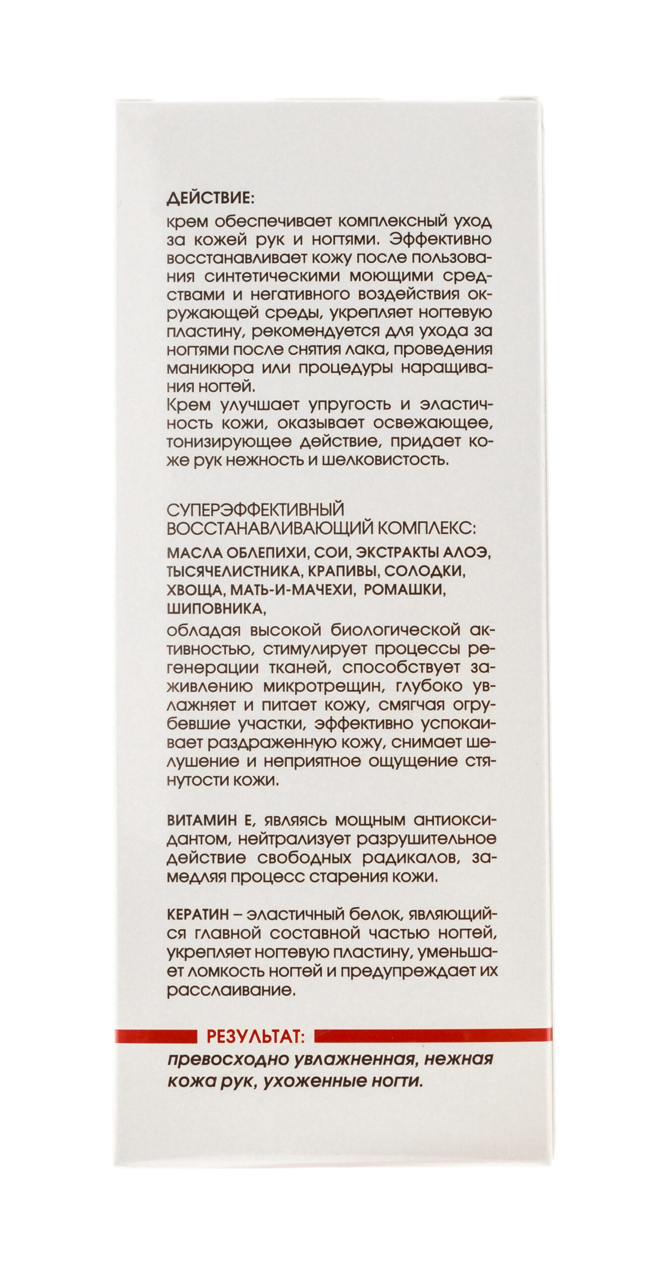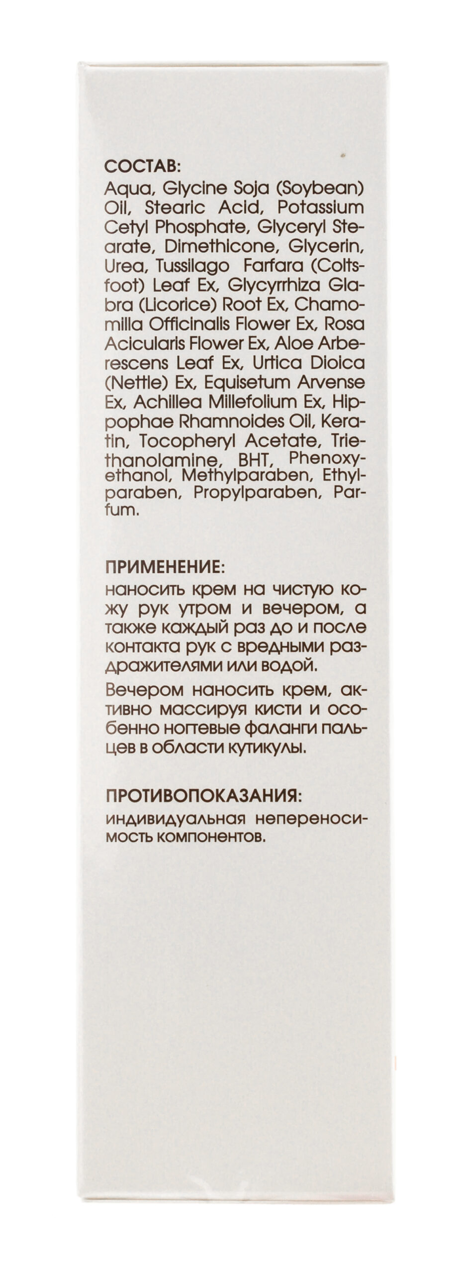 Крем для рук, ногтей и кутикулы имеет легкую нежирную текстуру и приятный запах. Он предназначен для ежедневного ухода за кожей рук, для ее восстановления, питания, увлажнения. Кроме того, крем укрепляет ногтевую пластину, препятствуя ломкости и расслоению ногтей. Он легкий, прекрасно впитывается, не оставляя жирной пленки на поверхности кожи. Такое средство позволит заметно продлить эффект от процедуры маникюра и поможет ручкам дольше оставаться мягкими, бархатистыми и ухоженными. Подходит для ухода за кожей в любой сезон. Активные ингредиенты: Кератин, витамин Е, алоэ, мать-и-мачеха, солодка, ромашка, шиповник, крапива, хвощ, тысячелистник, масла облепиховое и соевое. Применение: Крем нужно наносить на чистую и сухую кожу рук, совершая массажные движения, до полного впитывания средства. При этом особое внимание следует уделять массажу пальцев в зоне кутикулы и ногтевой пластины. Крем можно использовать после каждого контакта рук с водой и после любого агрессивного внешнего воздействия. Купить крем для рук и ногтей можно на официальном сайте КОRА, а также в фирменных сетевых магазинах бренда.