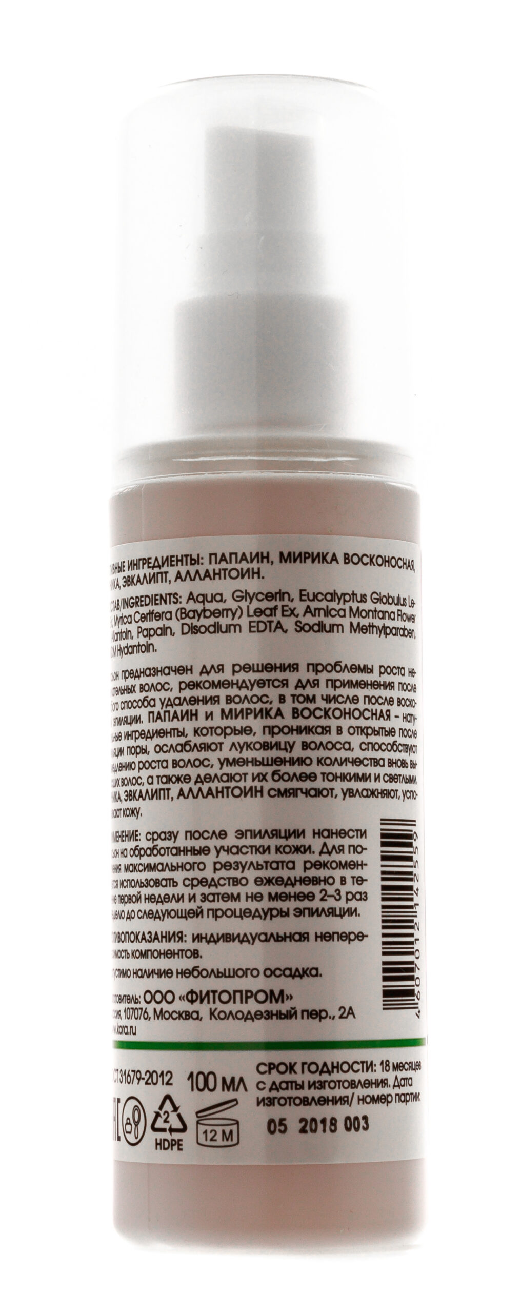 Лосьон для замедления роста волос разработан для эстетического ухода за телом. Благодаря активному составу средства и регулярному использованию интервалы между процедурами бритья, а также сахарной, восковой или любой другой эпиляции увеличиваются. Лосьон успокаивающе действует на раздраженную кожу, помогает ей дольше оставаться гладкой и предотвращает врастание волос. Для более удобного использования лосьон имеет жидкую консистенцию, а его флакон оснащен качественным распылителем, который дает возможность распределять средство по телу мгновенно и экономично. Активные ингредиенты: Папаин, мирика восконосная, арника, эвкалипт, аллантоин. Применение: Лосьон нужно равномерно распределить по обработанным участкам тела сразу после проведения любого вида эпиляции. Чтобы увидеть максимальный эффект, необходимо использовать средство каждый день на протяжении недели после процедуры эпиляции, а далее, для закрепления результата, два-три раза в неделю до следующей эпиляции. В жидкости может образовываться небольшой осадок благодаря высокой концентрации натуральных растительных экстрактов.