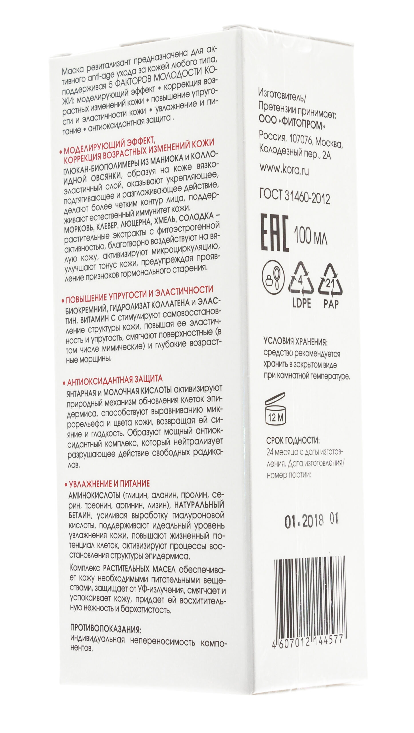 Маска ревитализант 5 факторов молодости кожи 100 мл KORA 44577