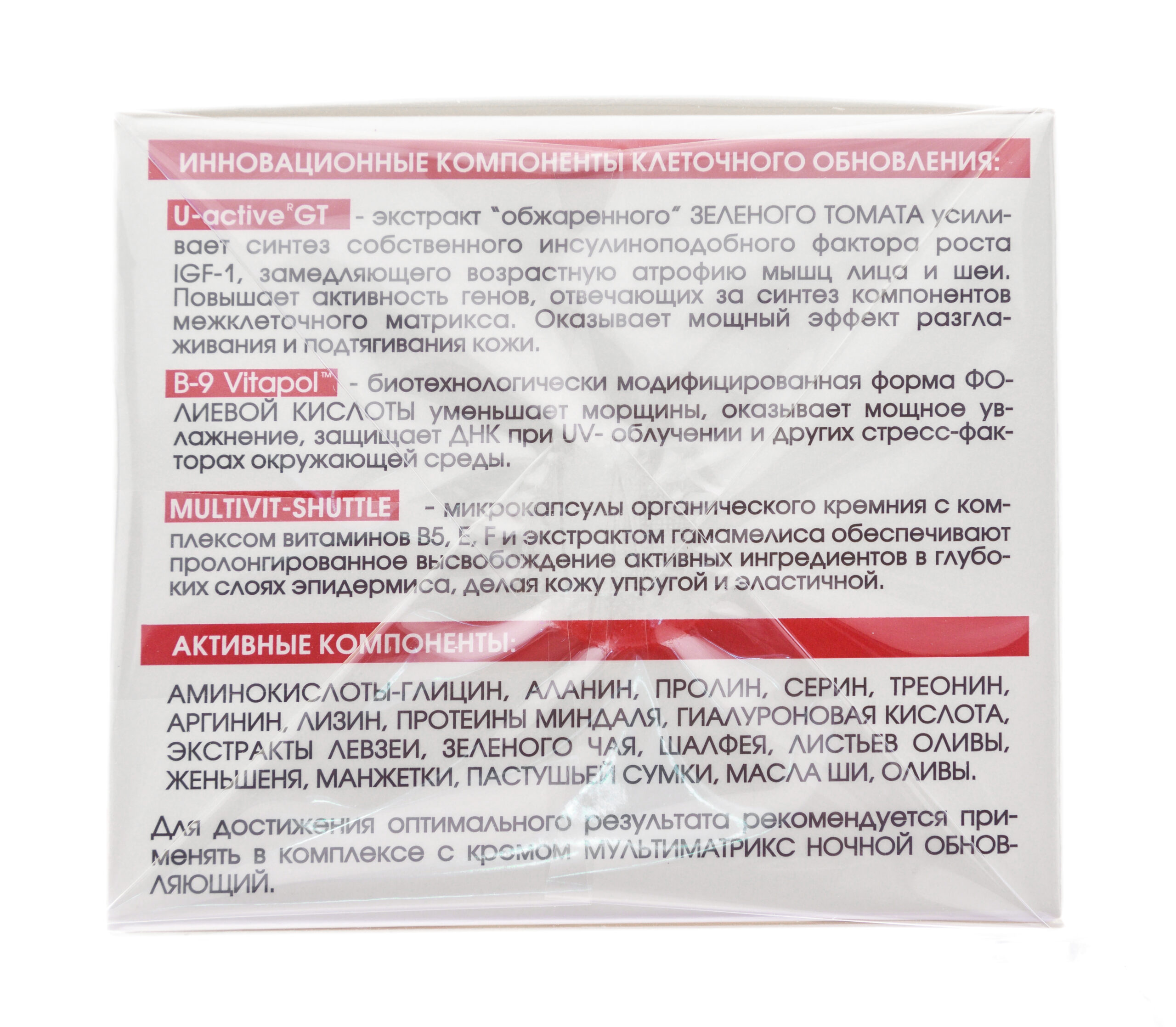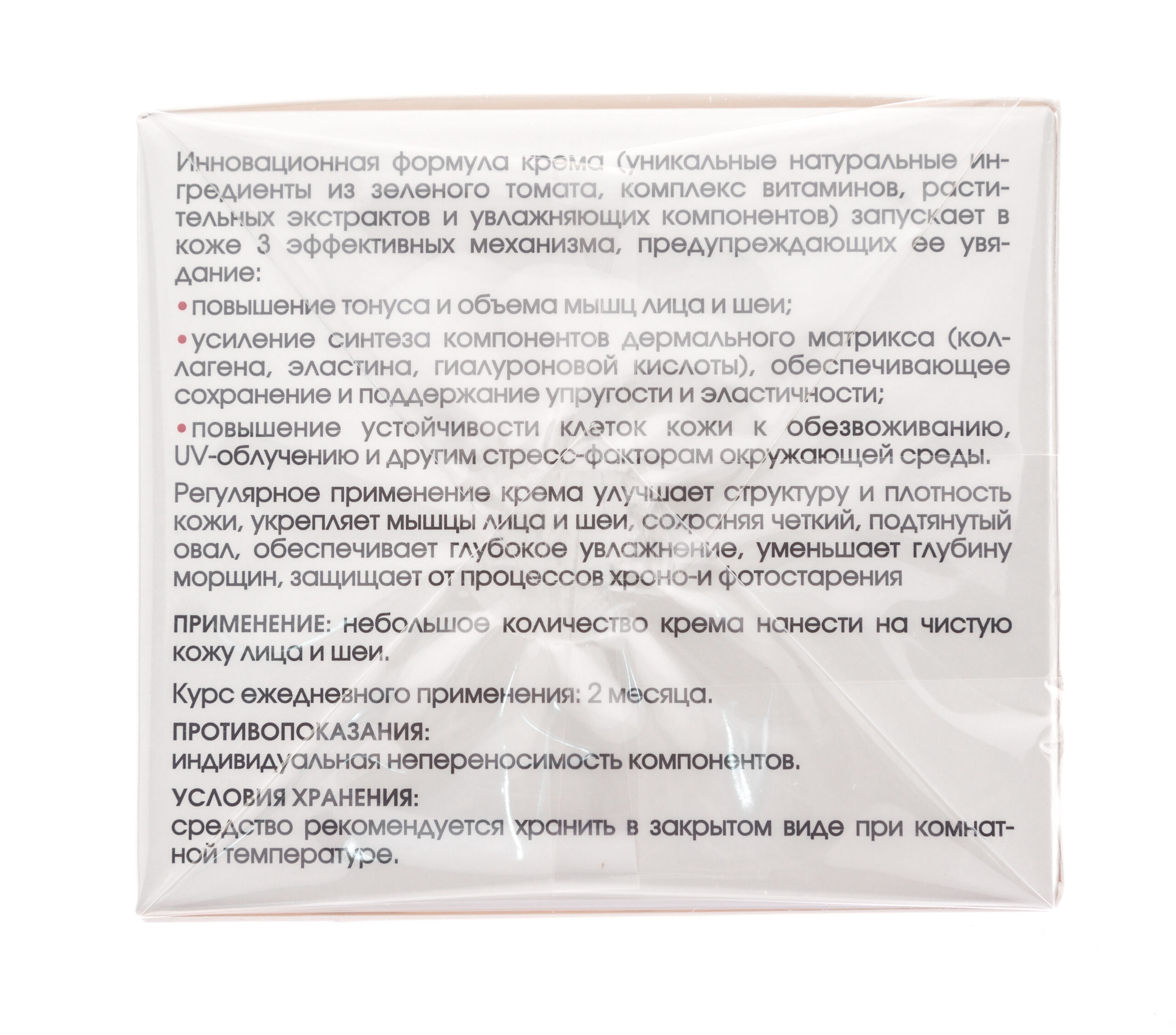 Восстановление кожи ,Коррекция морщин ,Питание кожи ,Повышение упругости и эластичности |