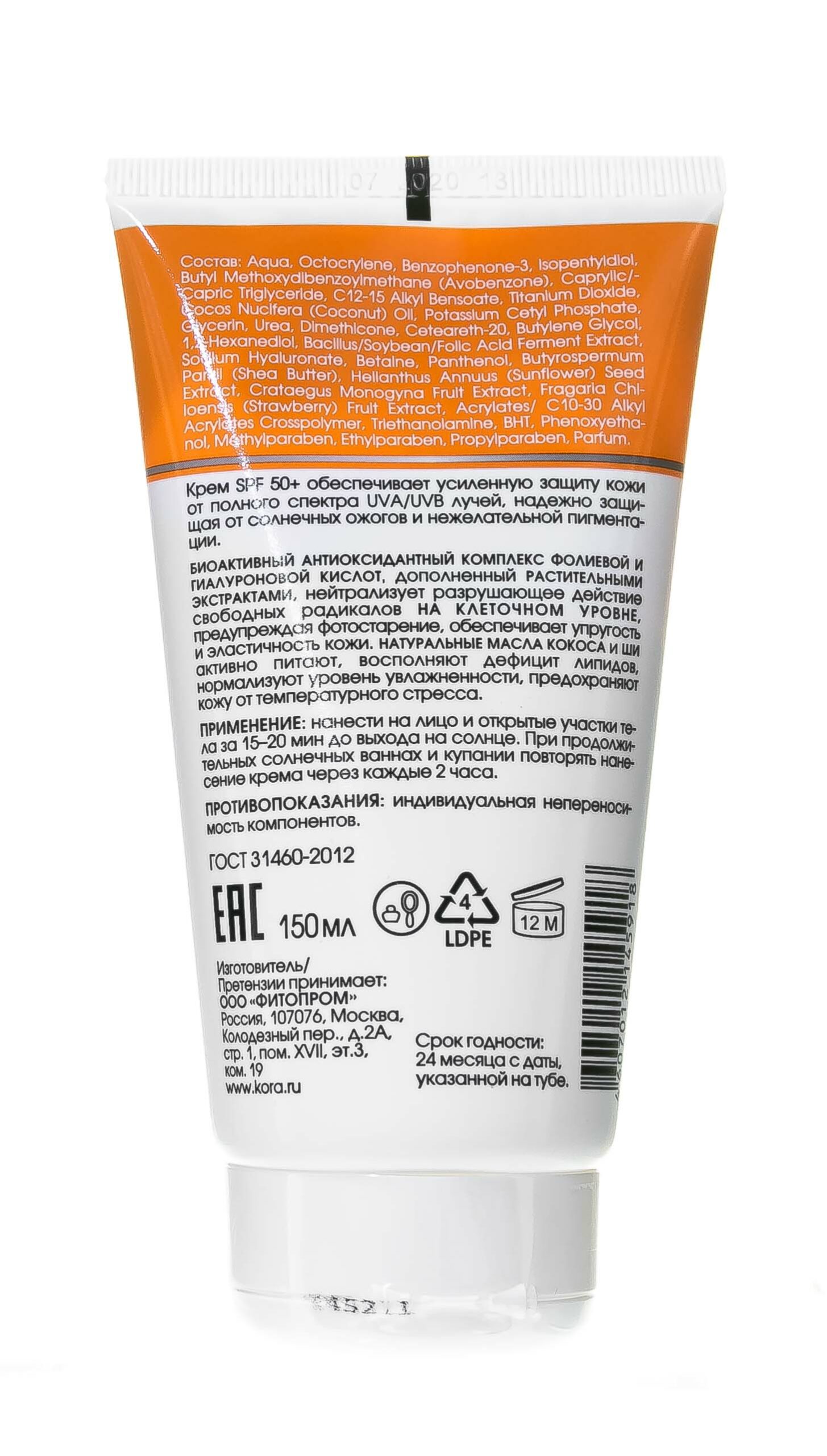 Крем солнцезащитный для лица и тела усиленная защита SPF50+ 150 мл KORA 45918